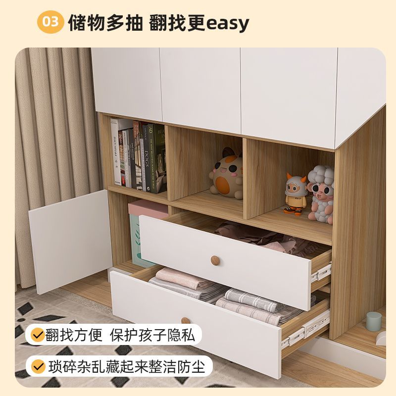 儿童衣柜家用卧室柜子靠墙实木收纳男孩女孩床尾小户型省空间衣柜