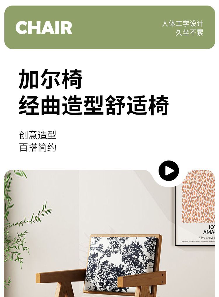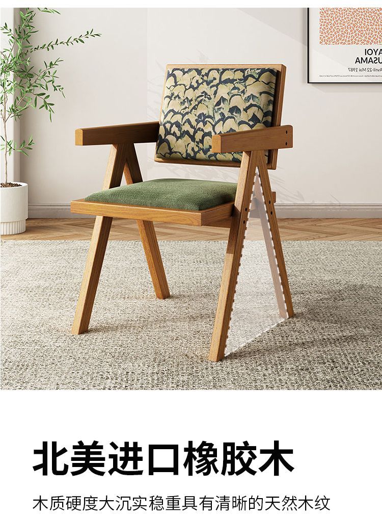 北欧实木家用藤编阳台餐椅凳子靠背民宿休闲简约藤椅昌迪加尔椅子