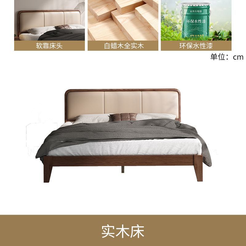 北欧白蜡木实木软包床简约现代1.8米双人床主卧大床1.2m小户型床