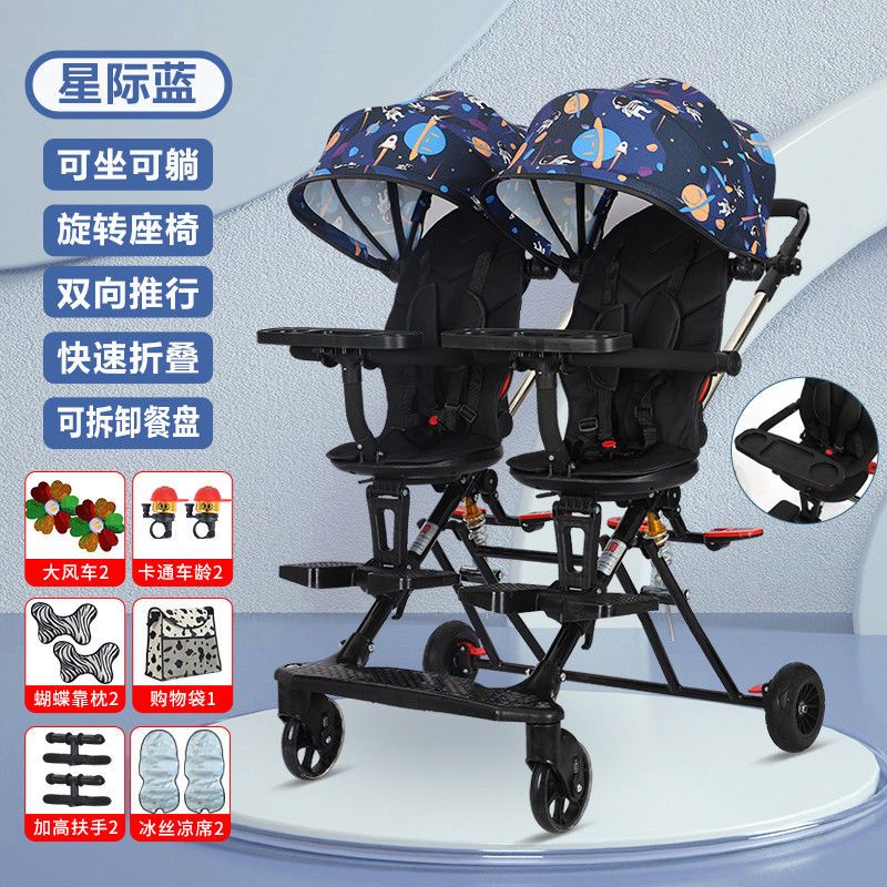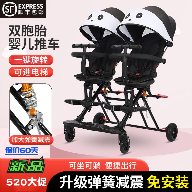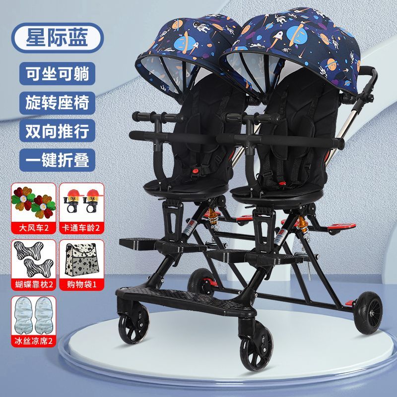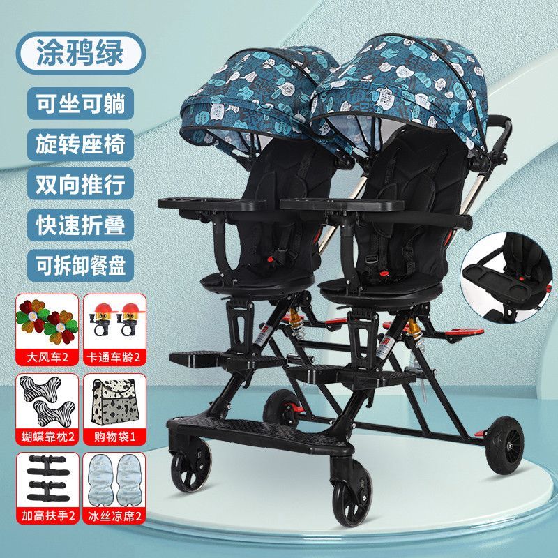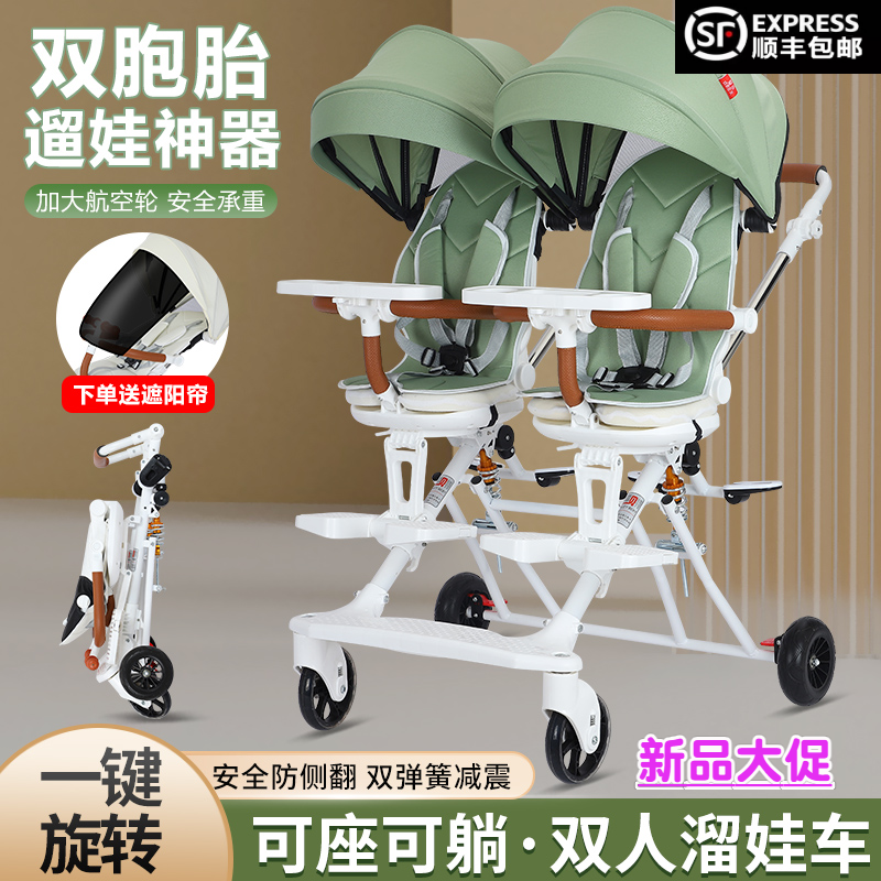 双胞胎溜娃神器双人轻便折叠手推车婴儿宝宝可坐可躺二胎龙凤胎遛