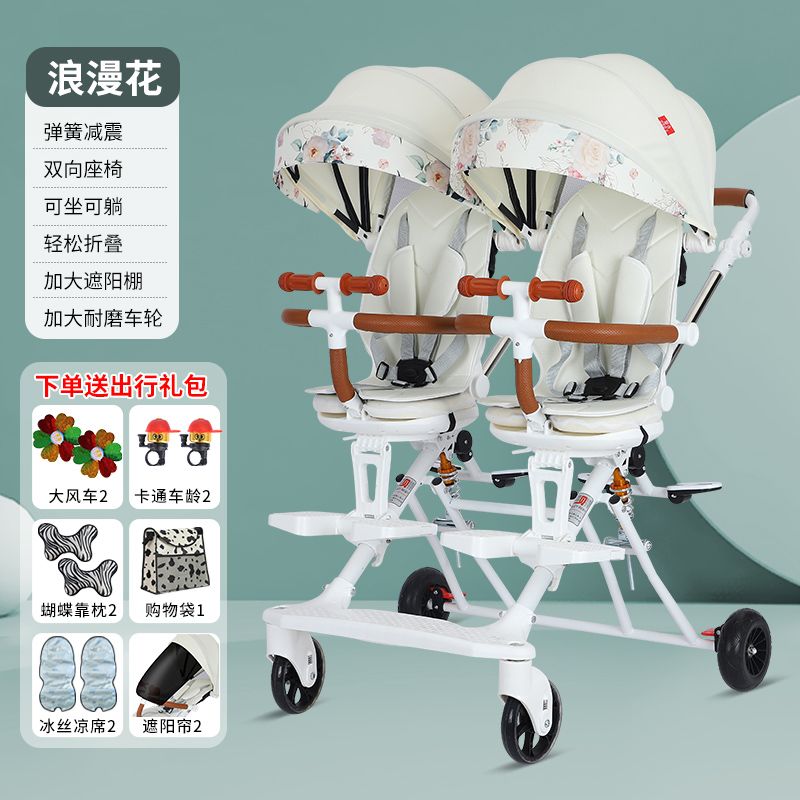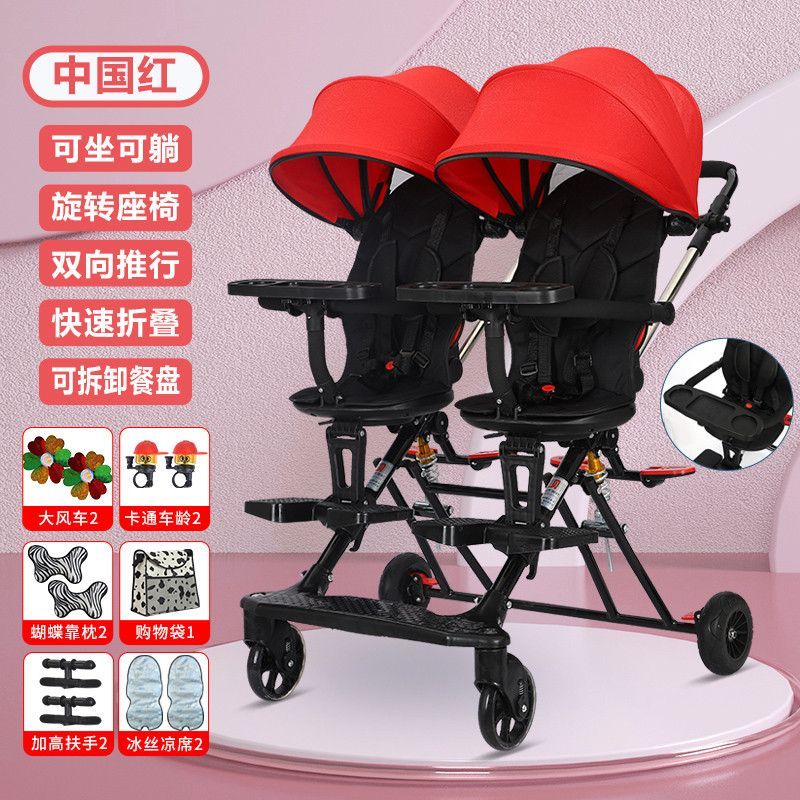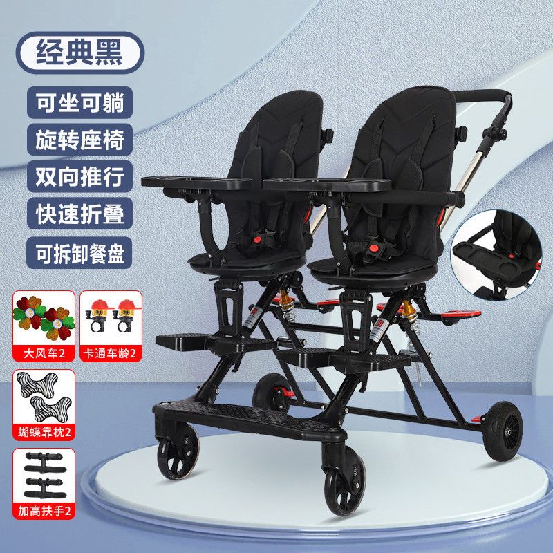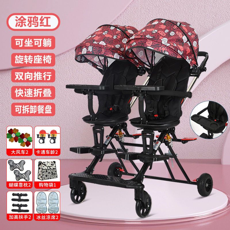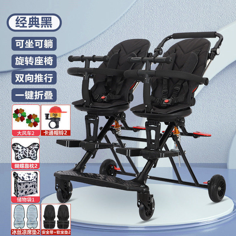 双胞胎溜娃神器双人轻便折叠手推车婴儿宝宝可坐可躺二胎龙凤胎遛