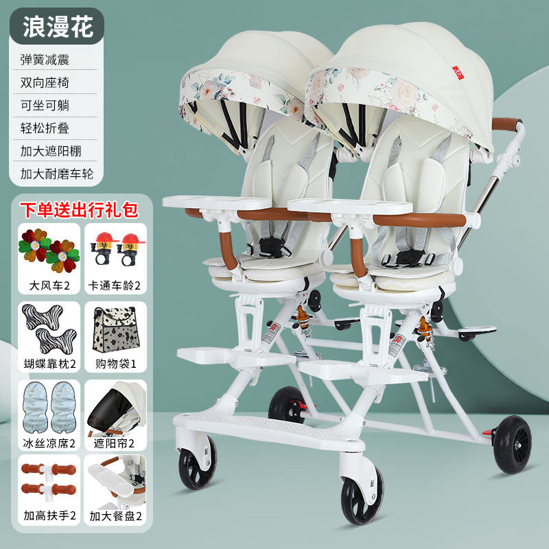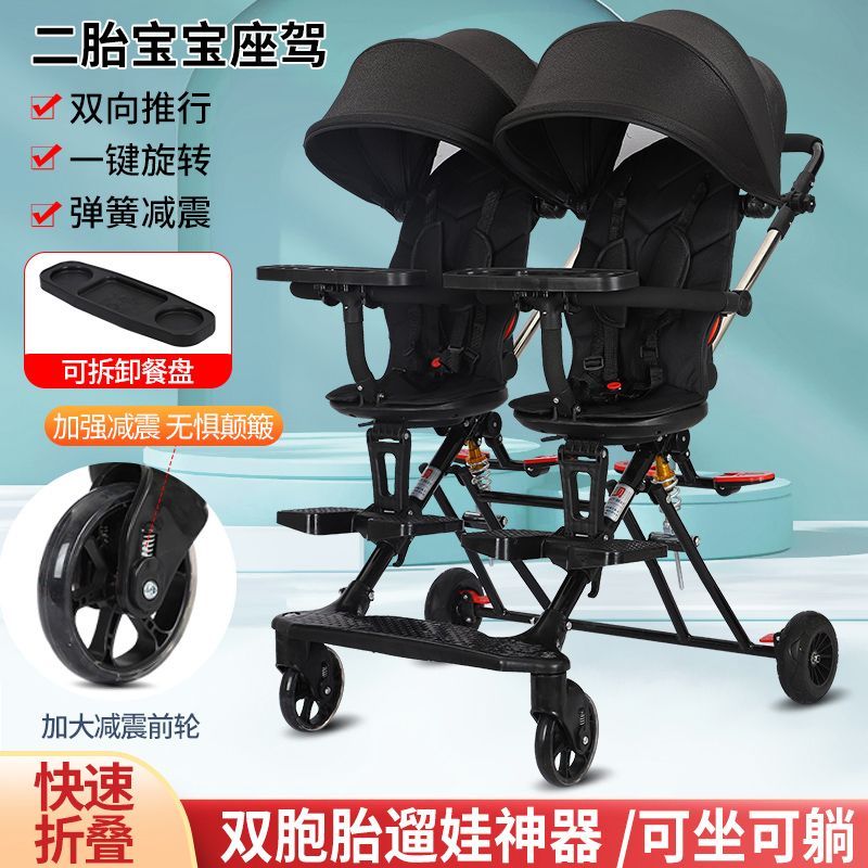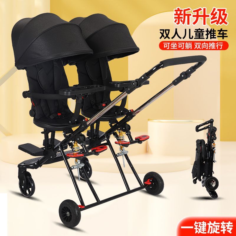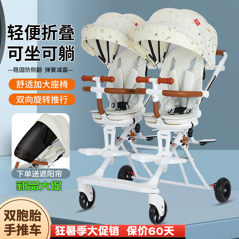 双胞胎溜娃神器双人轻便折叠手推车婴儿宝宝可坐可躺二胎龙凤胎遛
