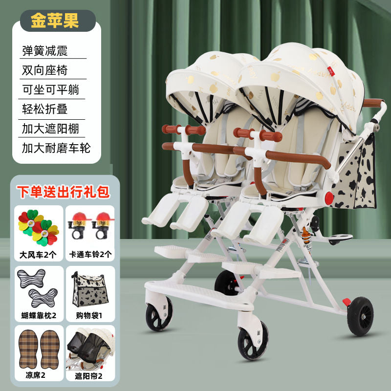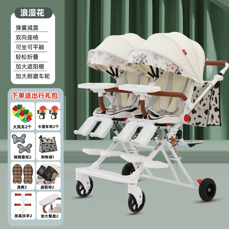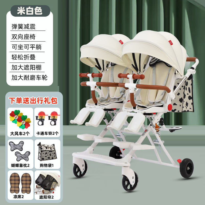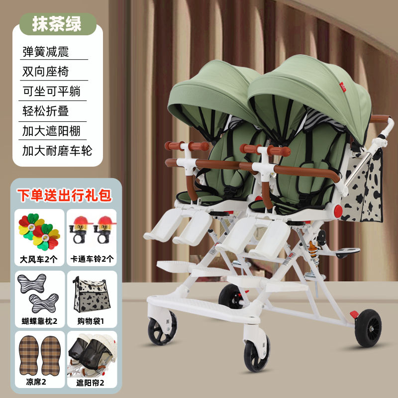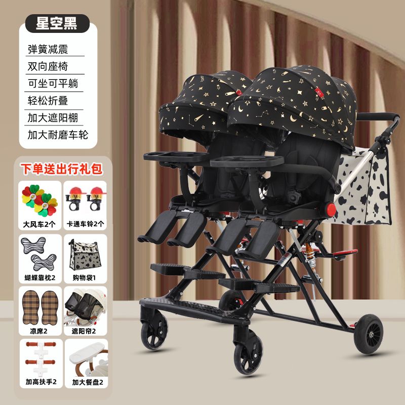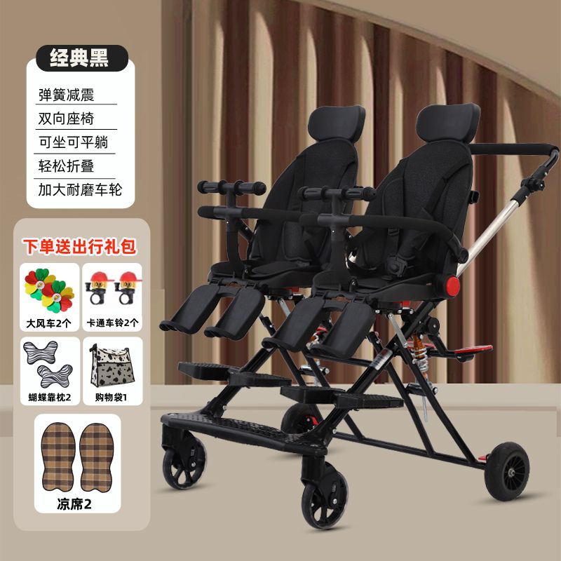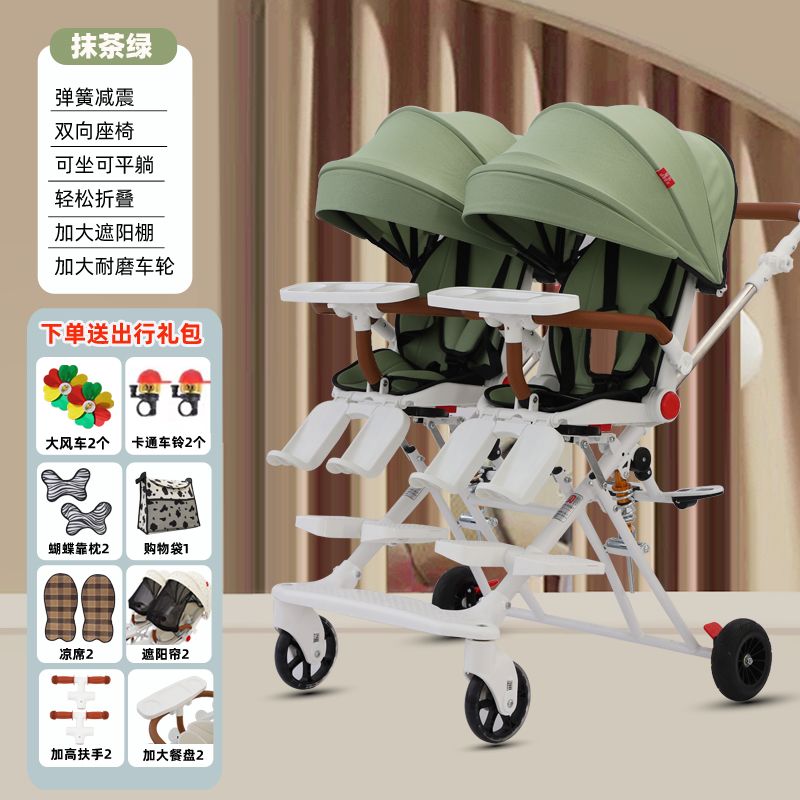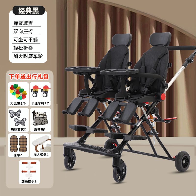 双胞胎溜娃神器大小宝宝可坐可平躺双向座椅折叠双人手推车遛娃车