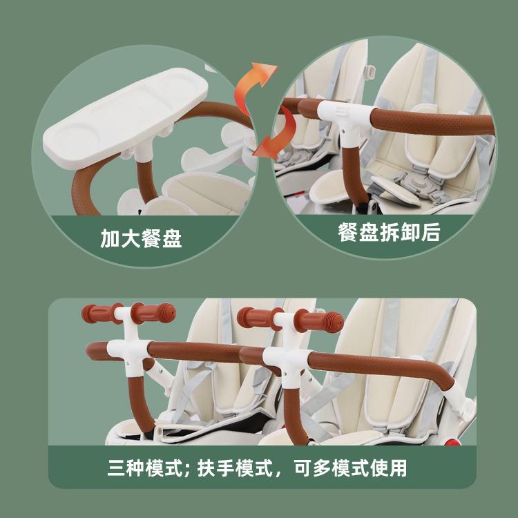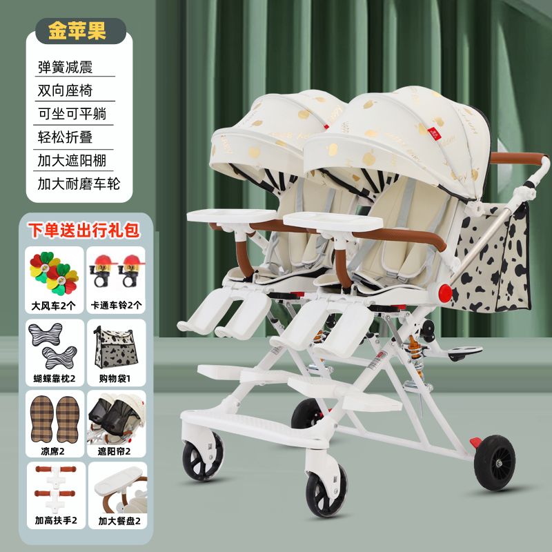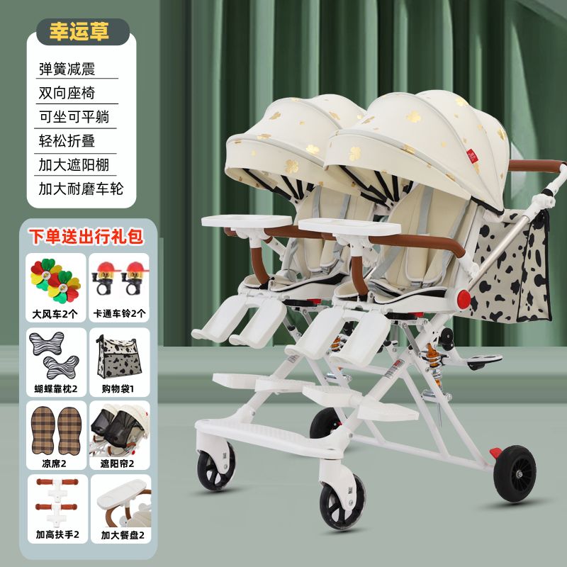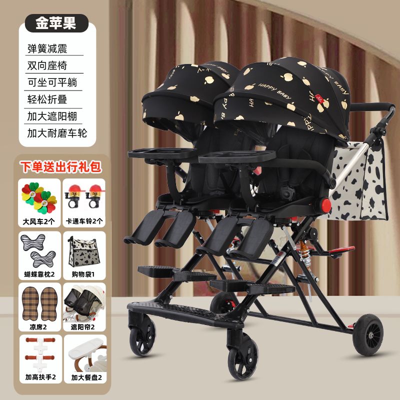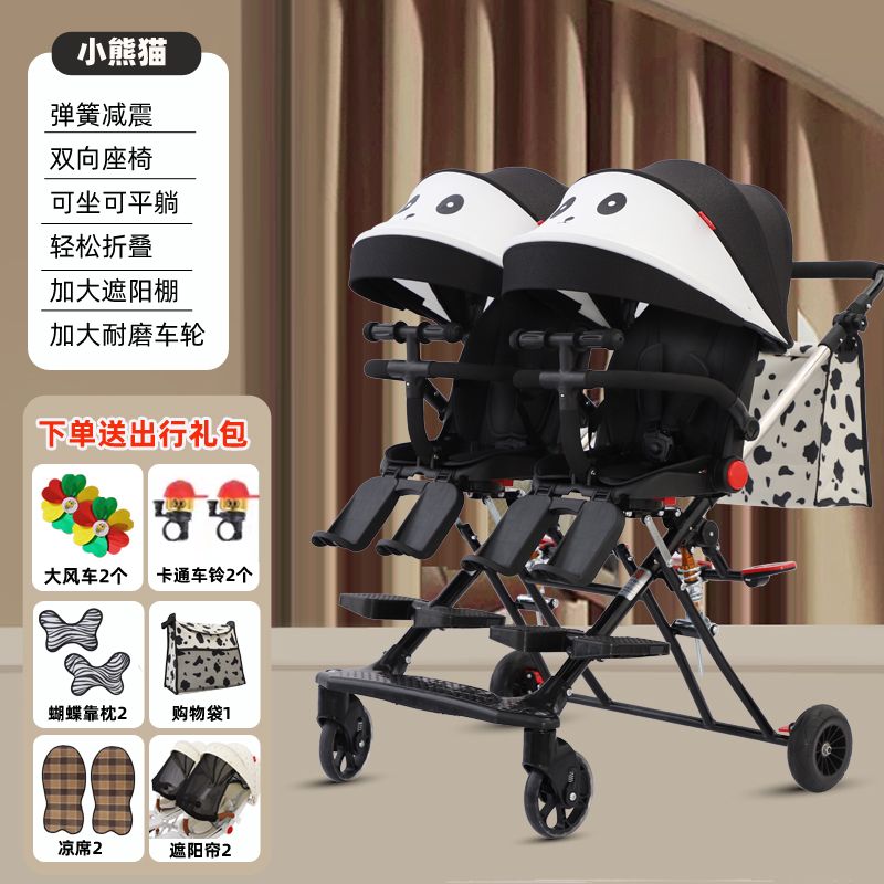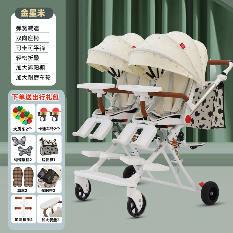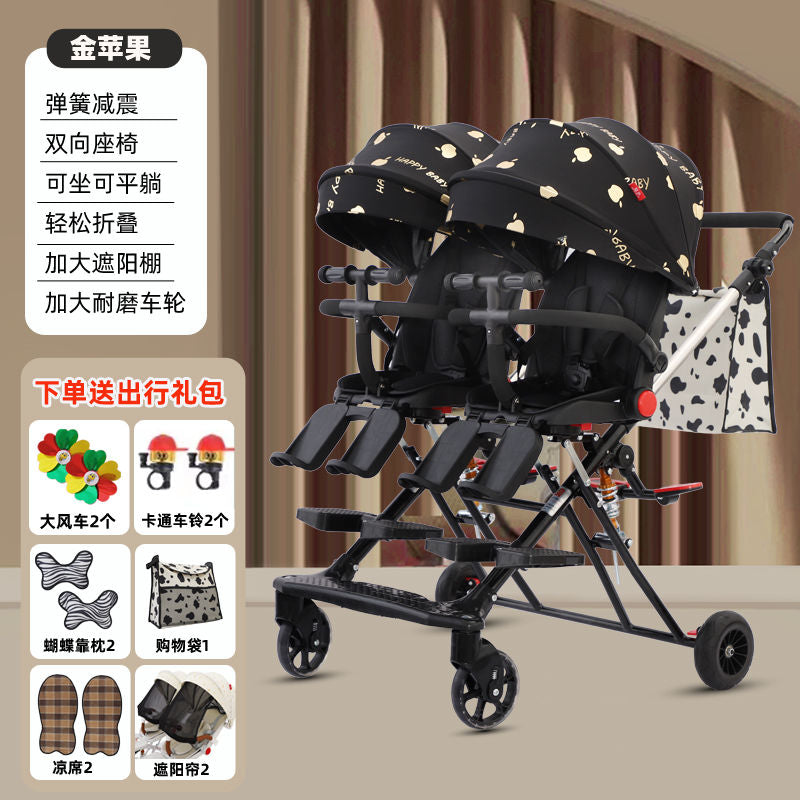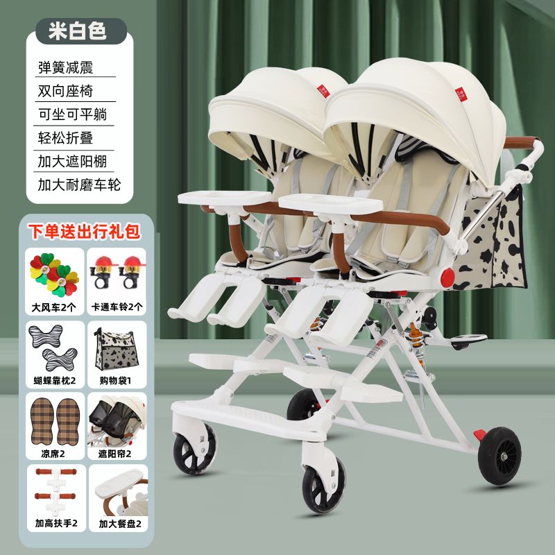 双胞胎溜娃神器大小宝宝可坐可平躺双向座椅折叠双人手推车遛娃车
