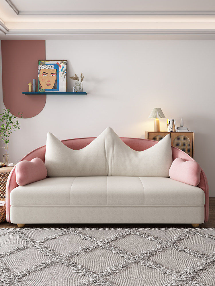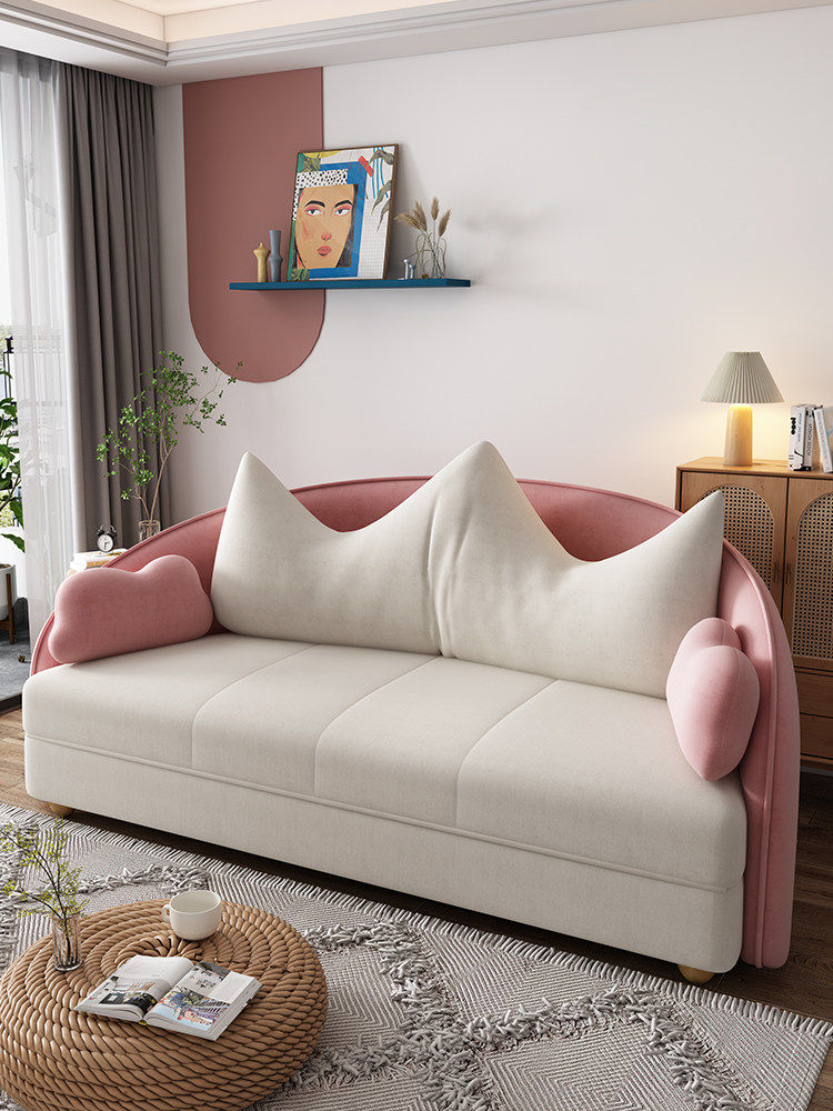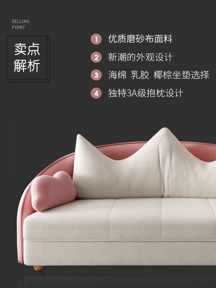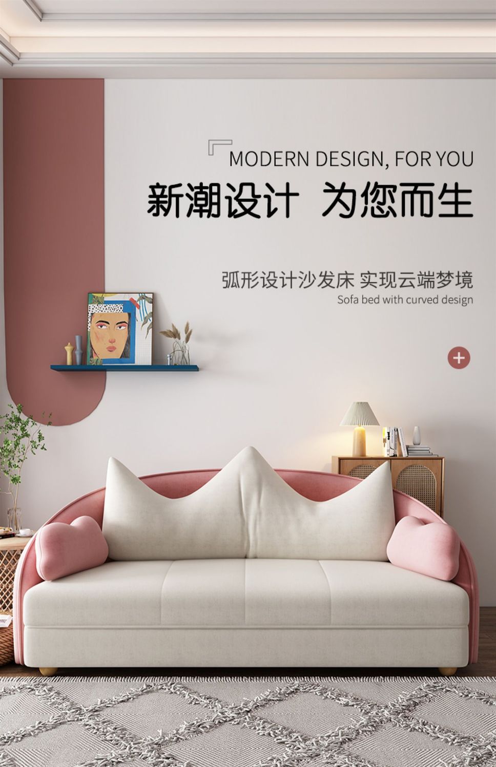 可爱公主圆沙发床可折叠两用小户型女孩卧室日系磨砂布坐卧多功能