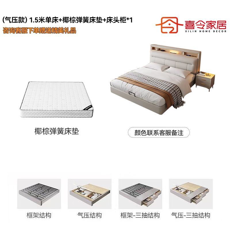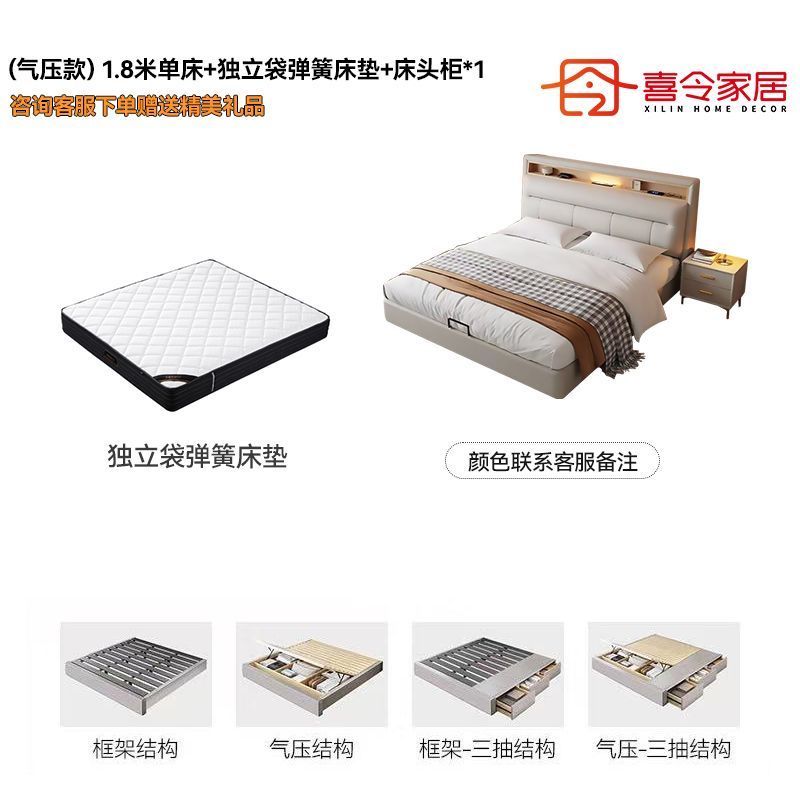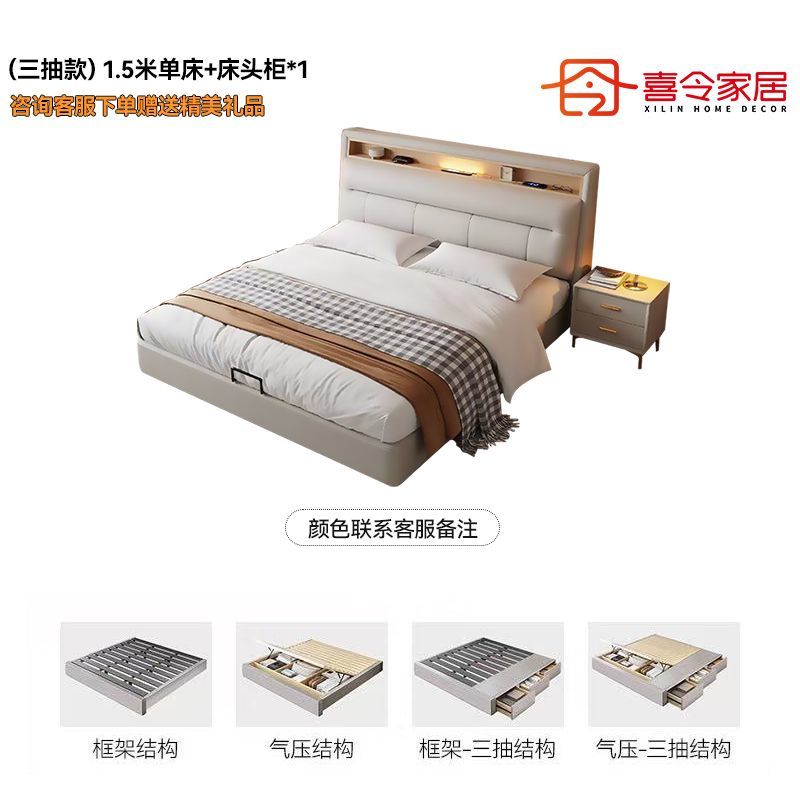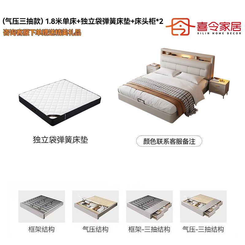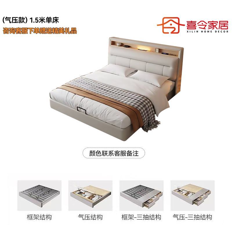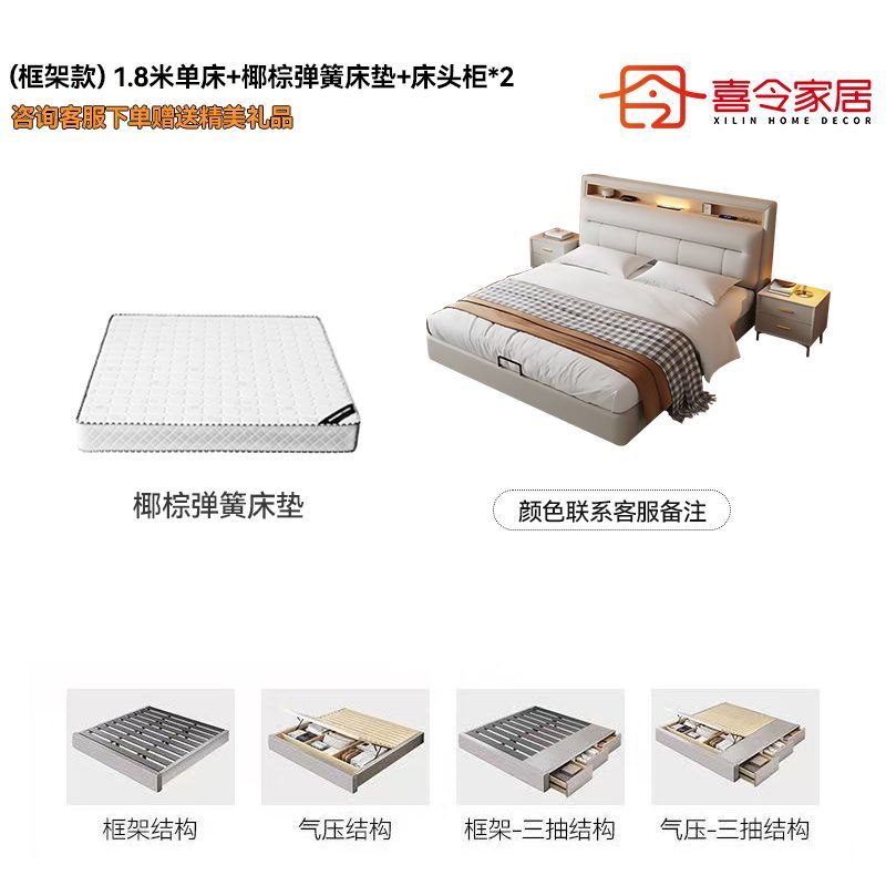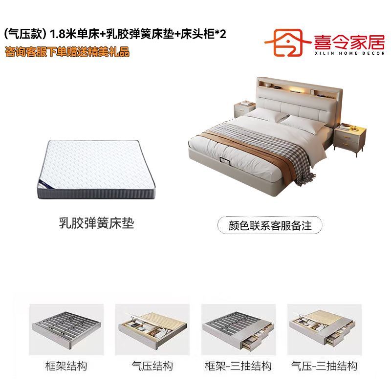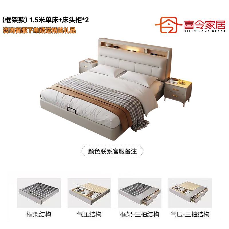 喜令家居现代极简床家用双人主卧床软包齐边小户型多功能储物婚床
