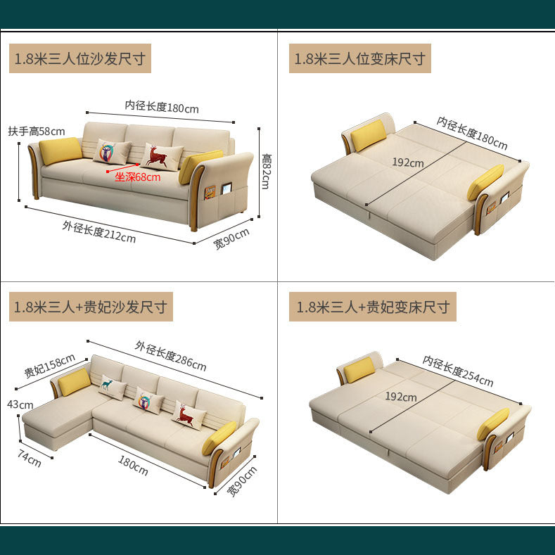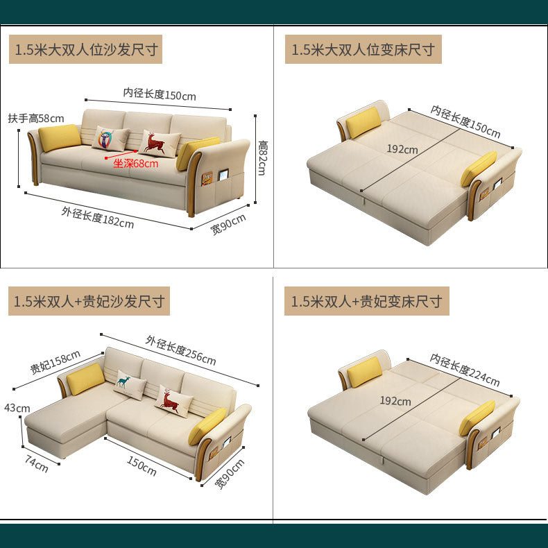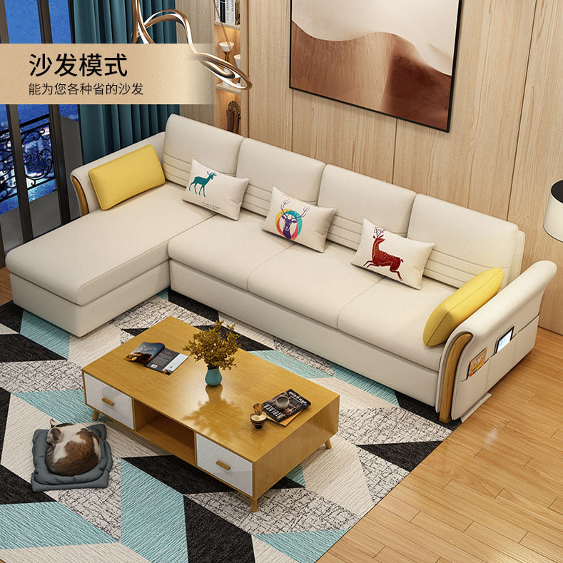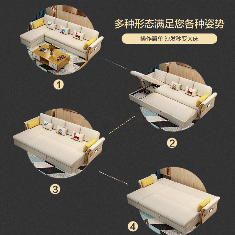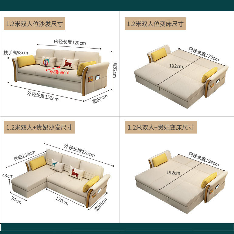 多功能伸缩布艺沙发床 客厅休闲组合转角带储物双人贵妃沙发床