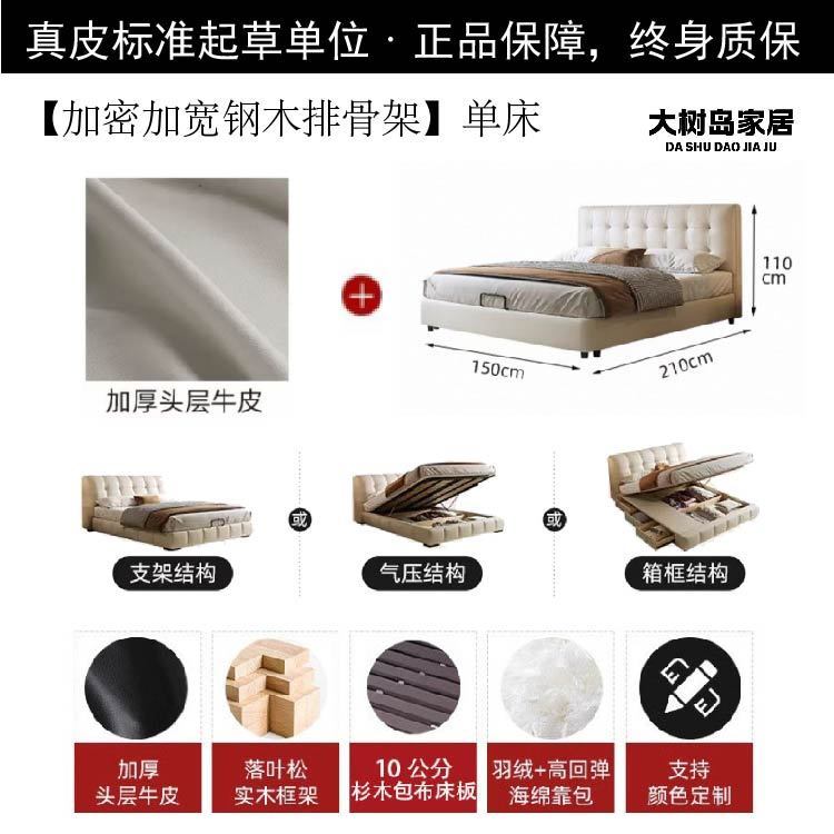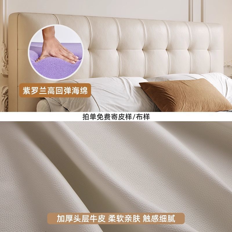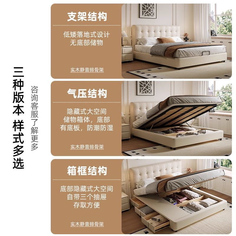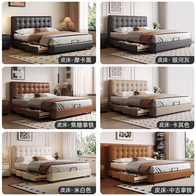 大树岛家居法式复古储物华夫格床主卧真皮床意式轻奢黑色中古风床