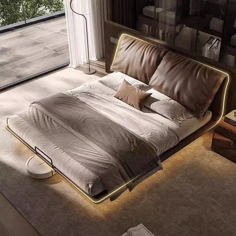 大象耳朵悬浮床轻奢现代简约主卧室简约意式极简真皮床网红软包床
