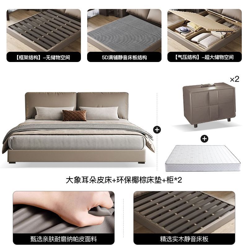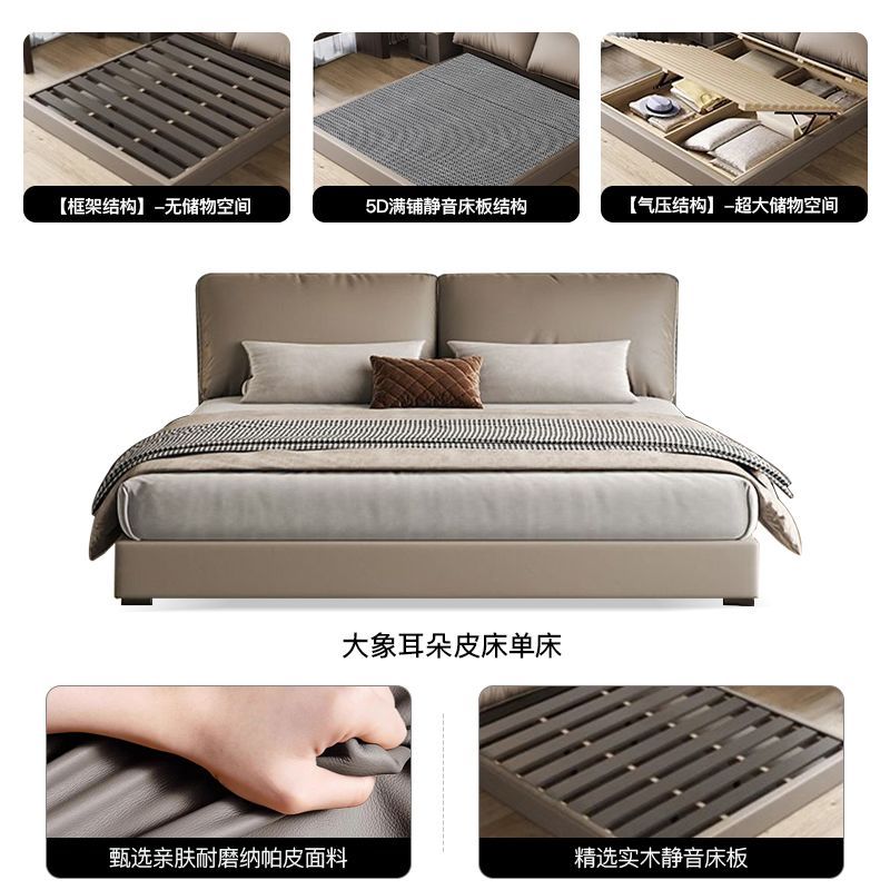 大象耳朵意式极简真皮床轻奢现代简约小户型双人主卧软包婚床储物