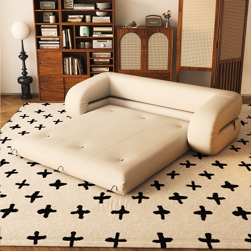 奶油风多功能折叠沙发床两用小户型客厅卧室新款防猫爪皮懒人沙发