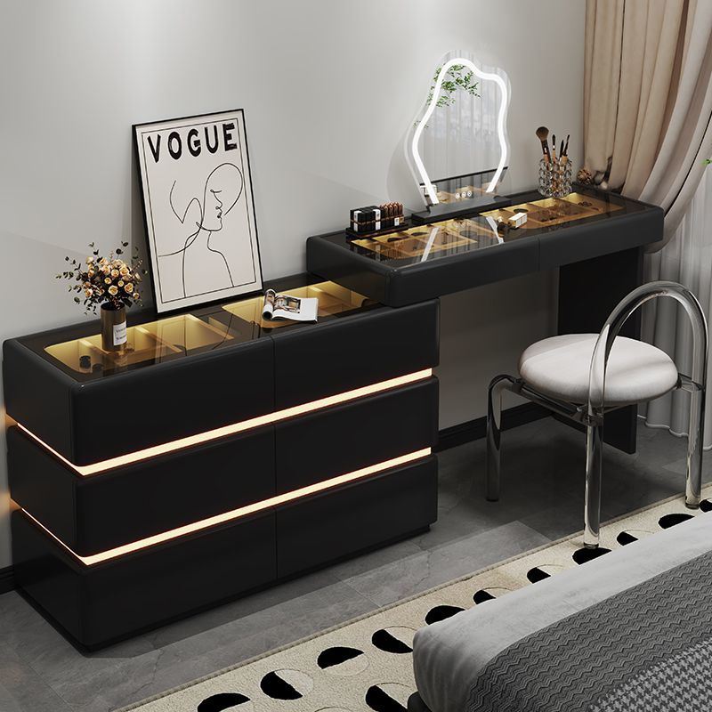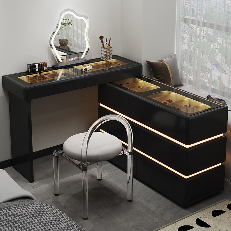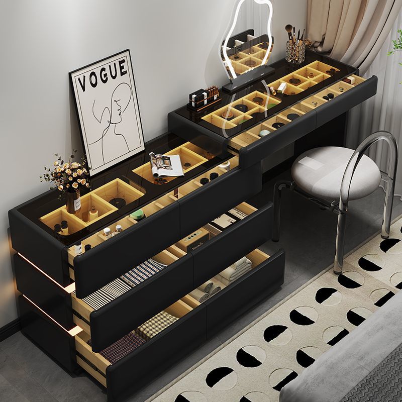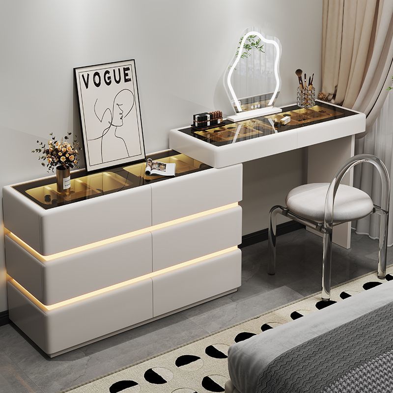 奶油风斗柜一体梳妆台卧室小户型极窄带灯可转角六斗收纳柜化妆台