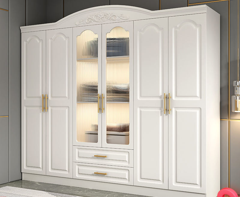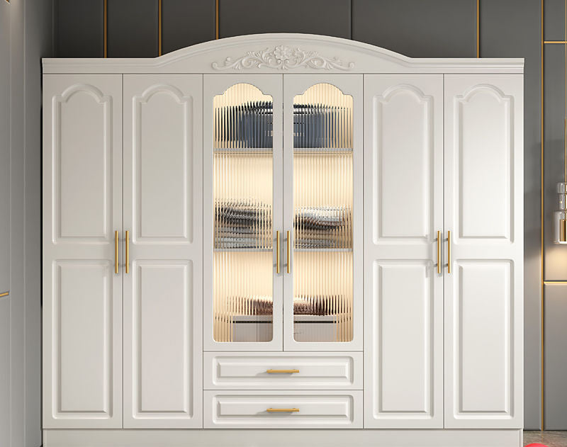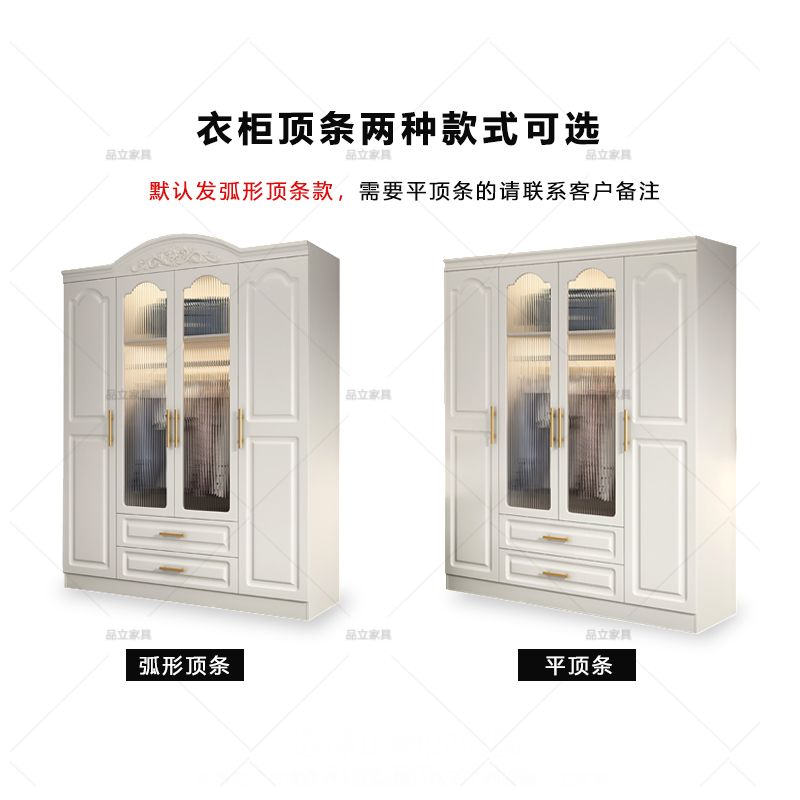 奶油风玻璃门衣柜家用卧室出租房经济型储物收纳柜子组装大衣橱