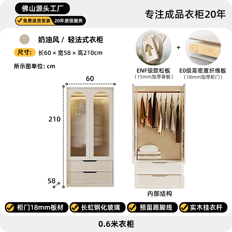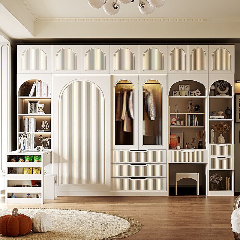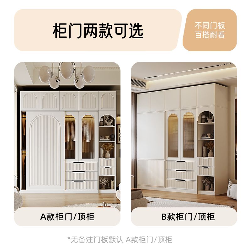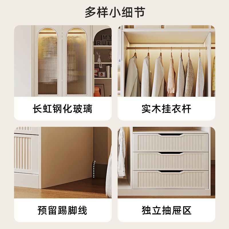 奶油风衣柜梳妆台一体组合法式小户型家用卧室储物柜成品收纳衣橱