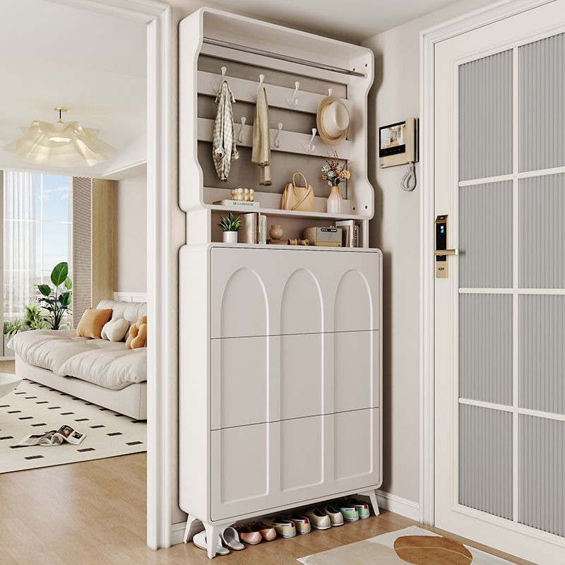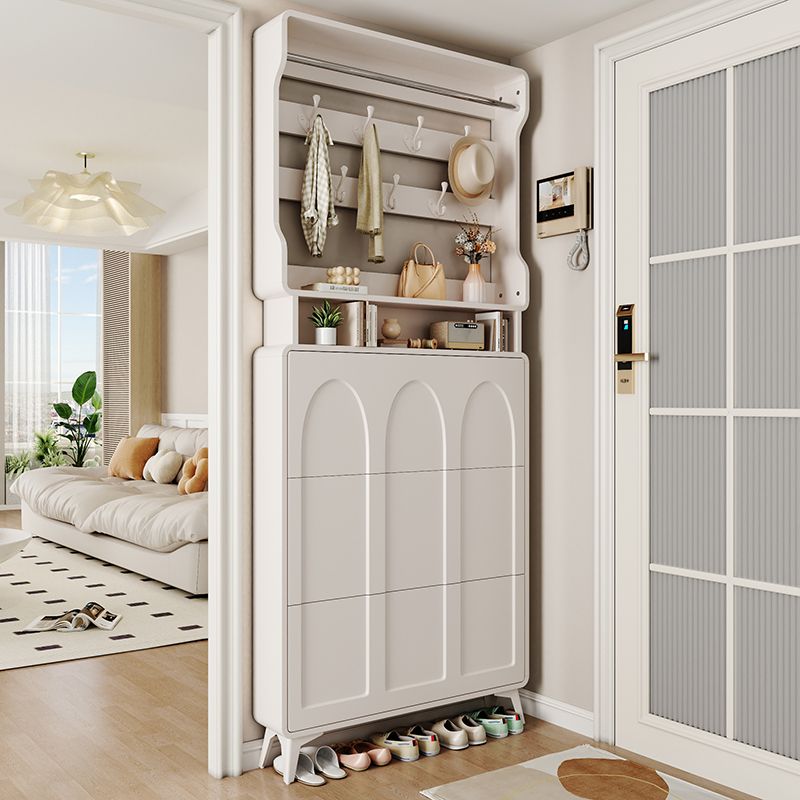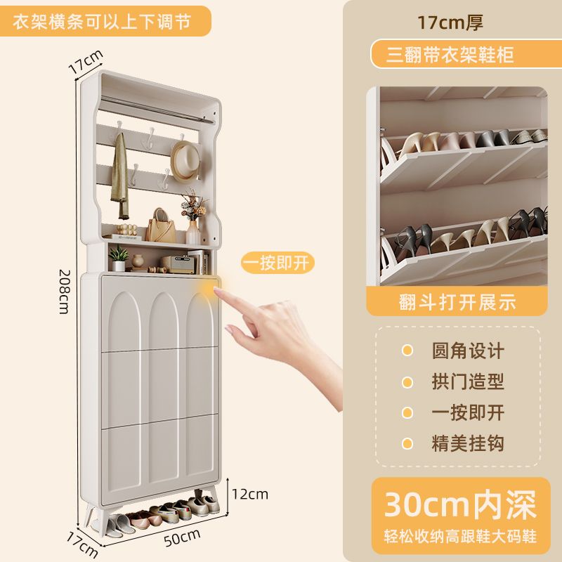 奶油风超薄翻斗鞋柜门口进门靠墙家用挂衣架一体楼道走廊收纳鞋架