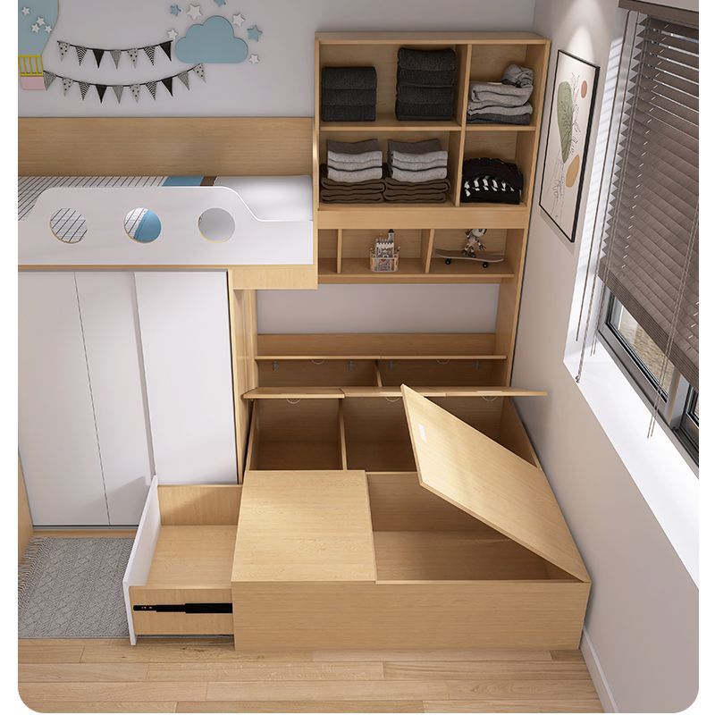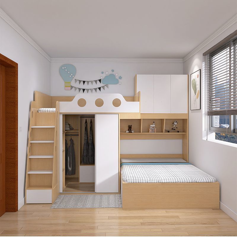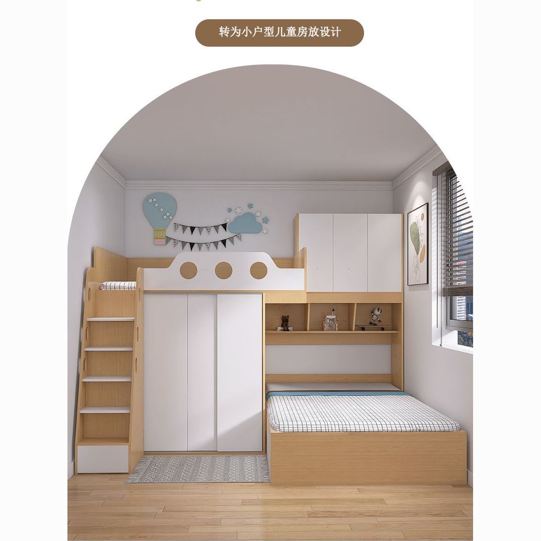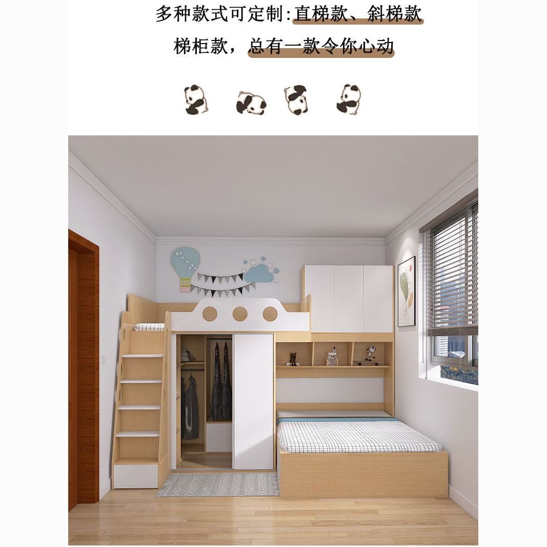 定制交错上下床多功能一体高低衣柜组合书桌双层儿童床错位小户型