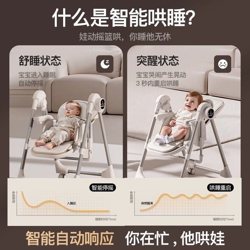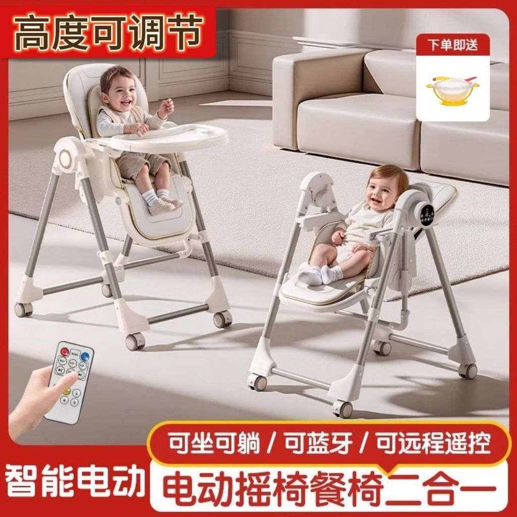 宝宝电动餐椅摇椅可折叠婴儿多功能家用儿童吃饭座椅便携餐桌椅子