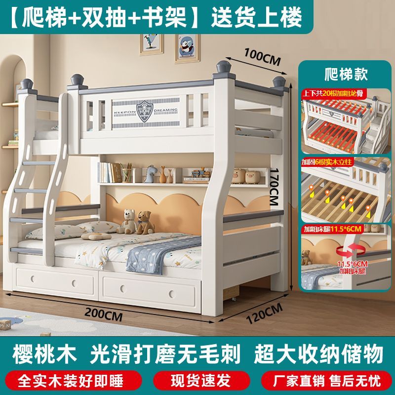 实木上下床儿童床子母床双层床樱桃木加厚高低加粗多功能小户型床