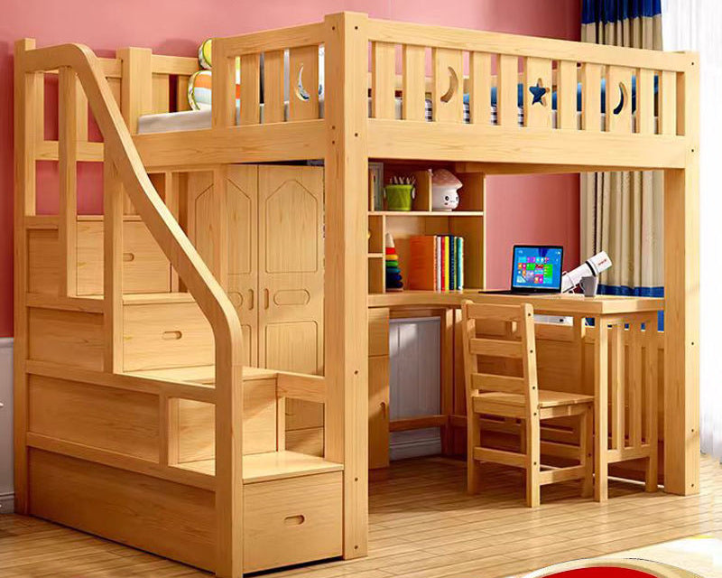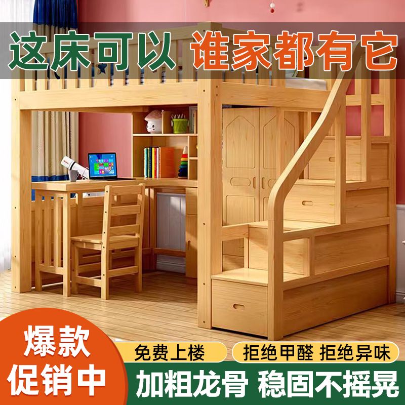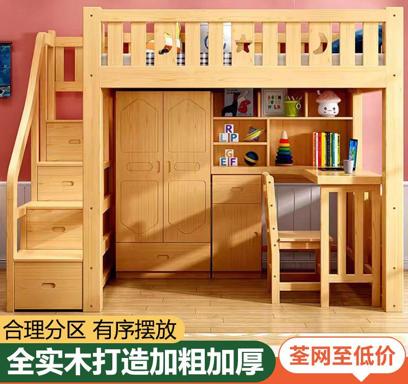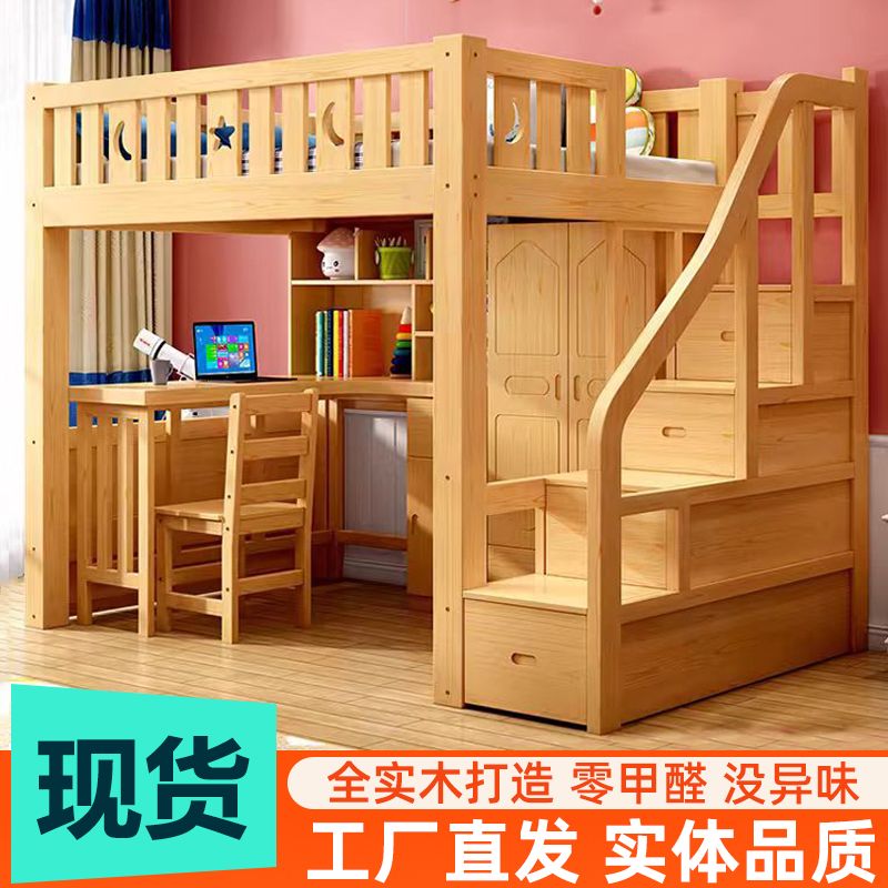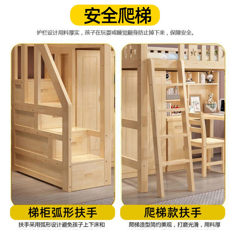实木上床下桌高低床上一体组合衣柜多功能上下床书桌高架小户型