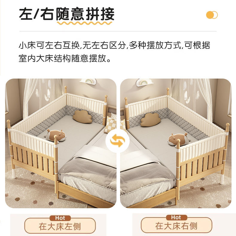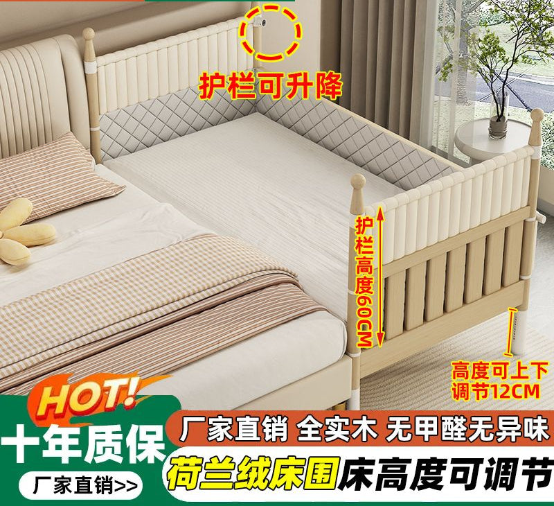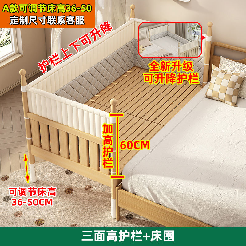 实木儿童拼接床可升降高度调节加宽床卧室大床带护栏新生婴儿床铺