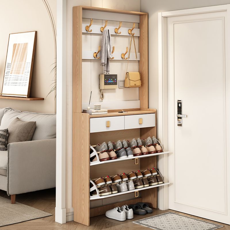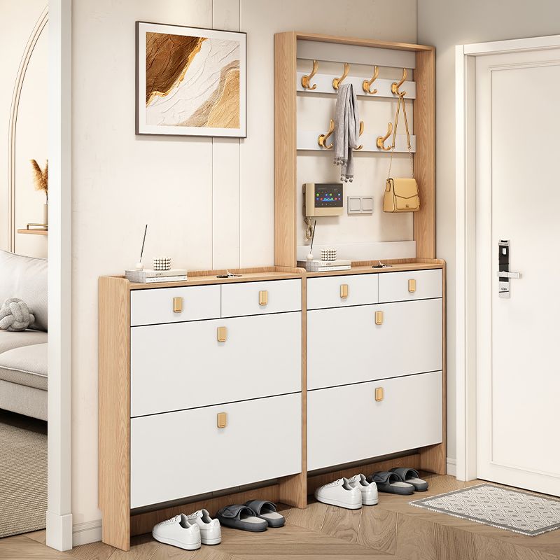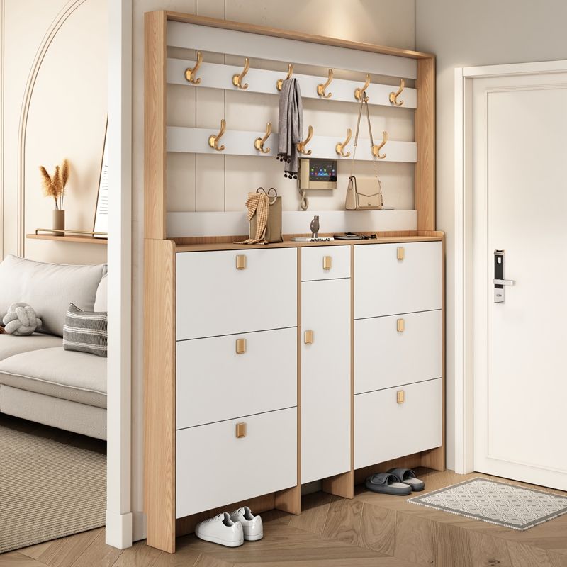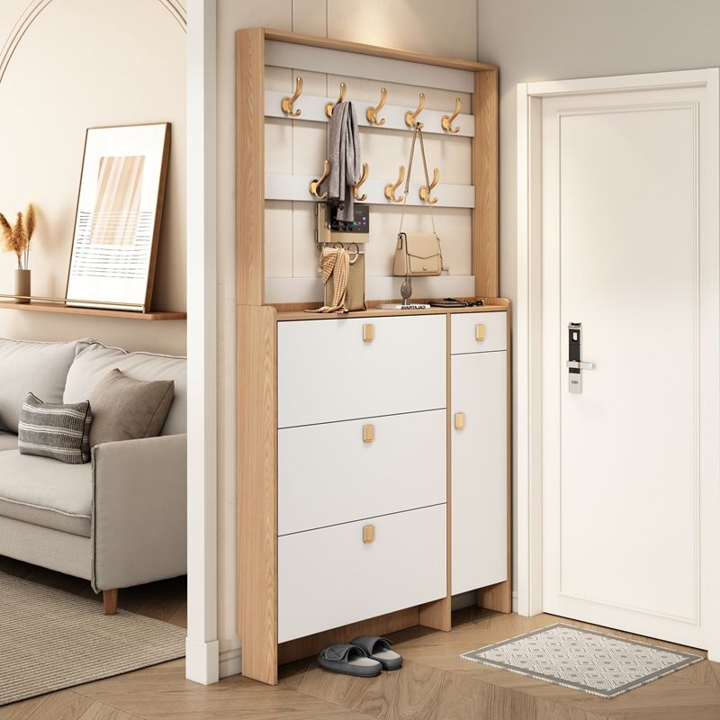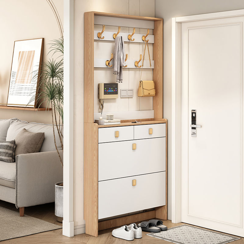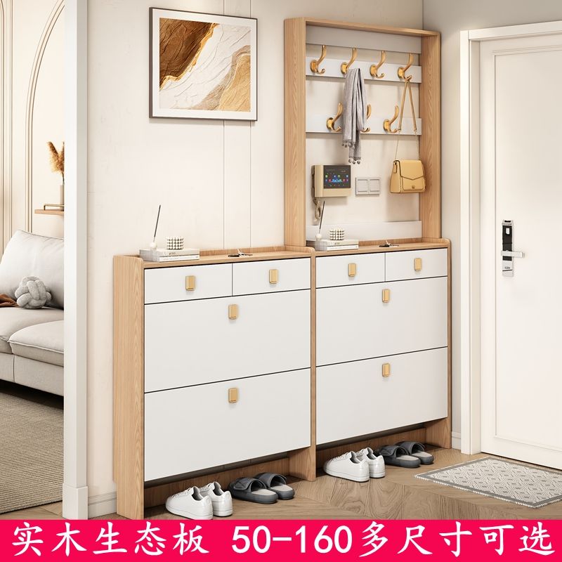 实木北欧风超薄翻斗鞋柜家用门口带衣帽架大容量门厅柜门后收纳柜