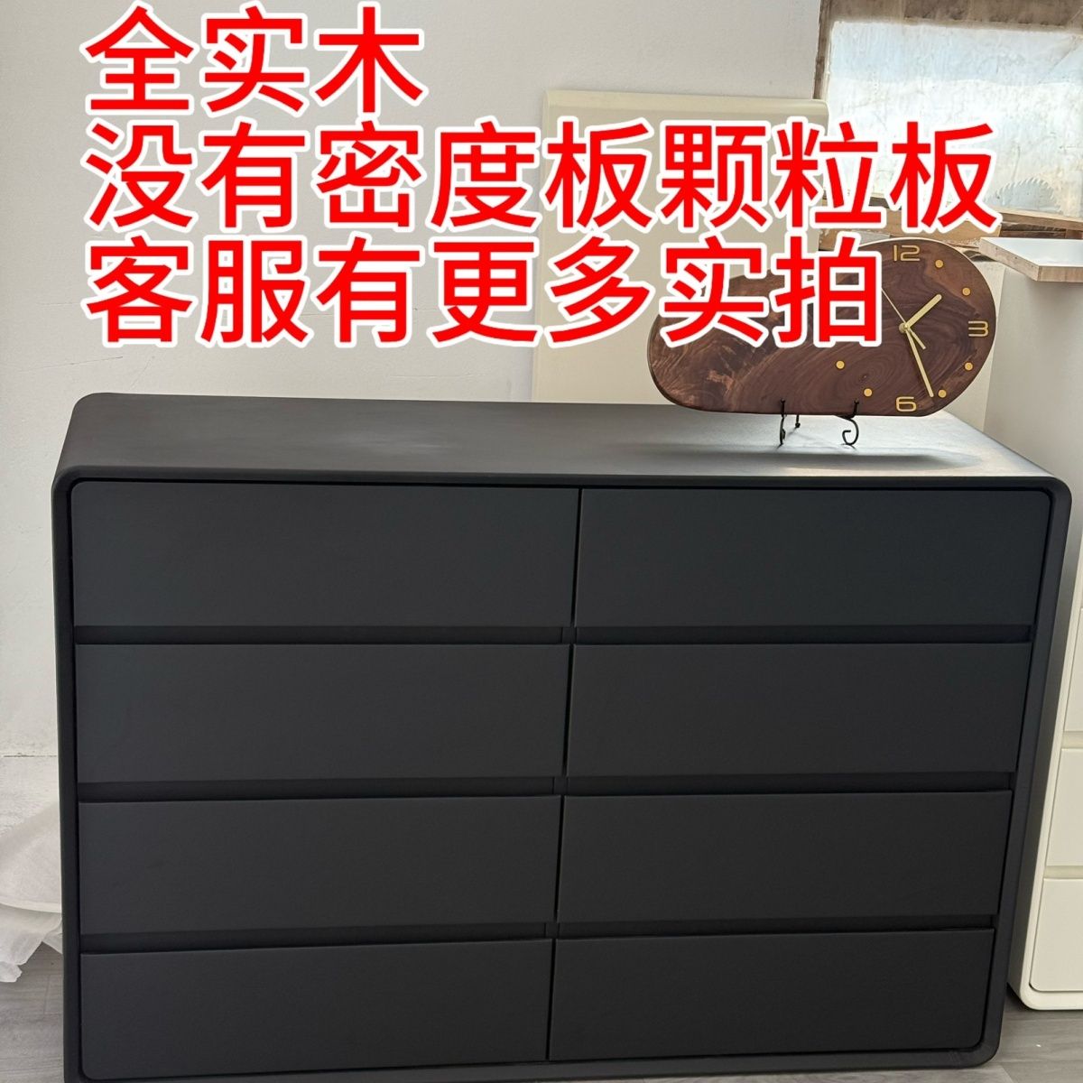 实木卧室现代家用斗柜简约床尾收纳抽屉储物柜奶油黑色客厅八斗柜