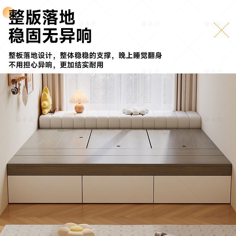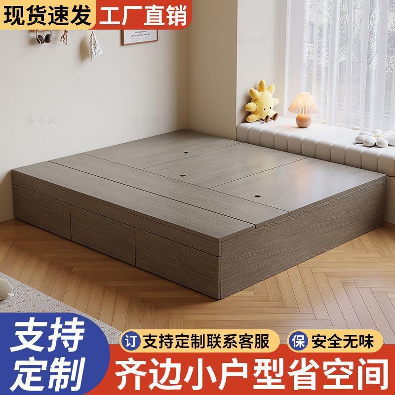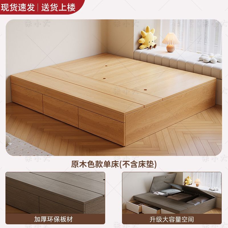 实木床现代简约双人床无床头床储物床地台榻榻米单人床柜一体定制