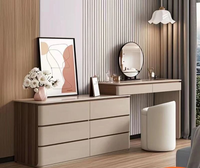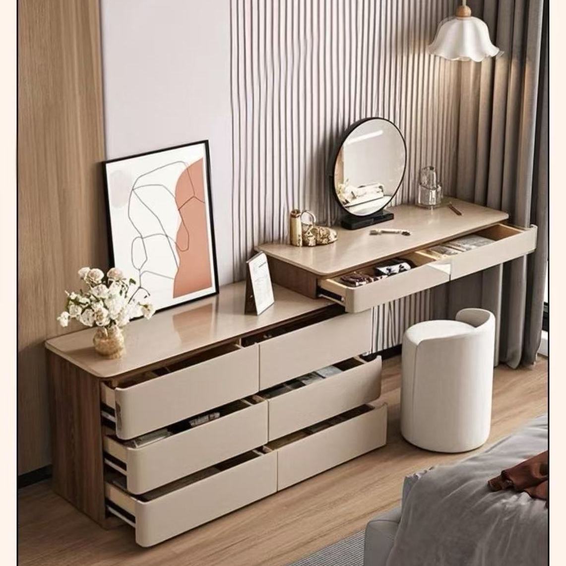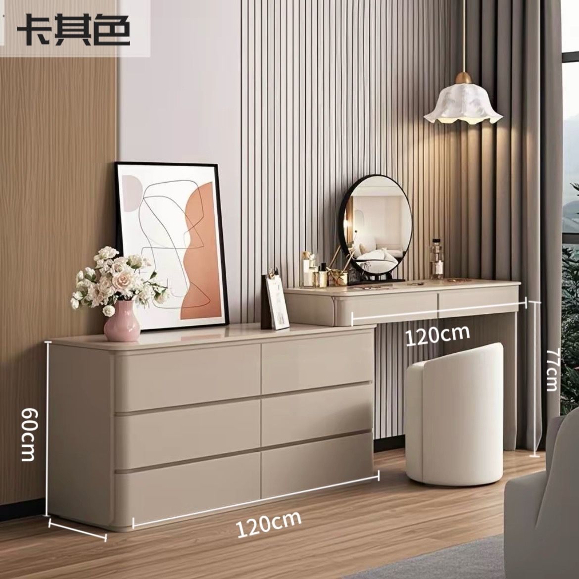 实木意式极简梳妆台收纳柜斗柜一体卧室床尾伸缩化妆桌