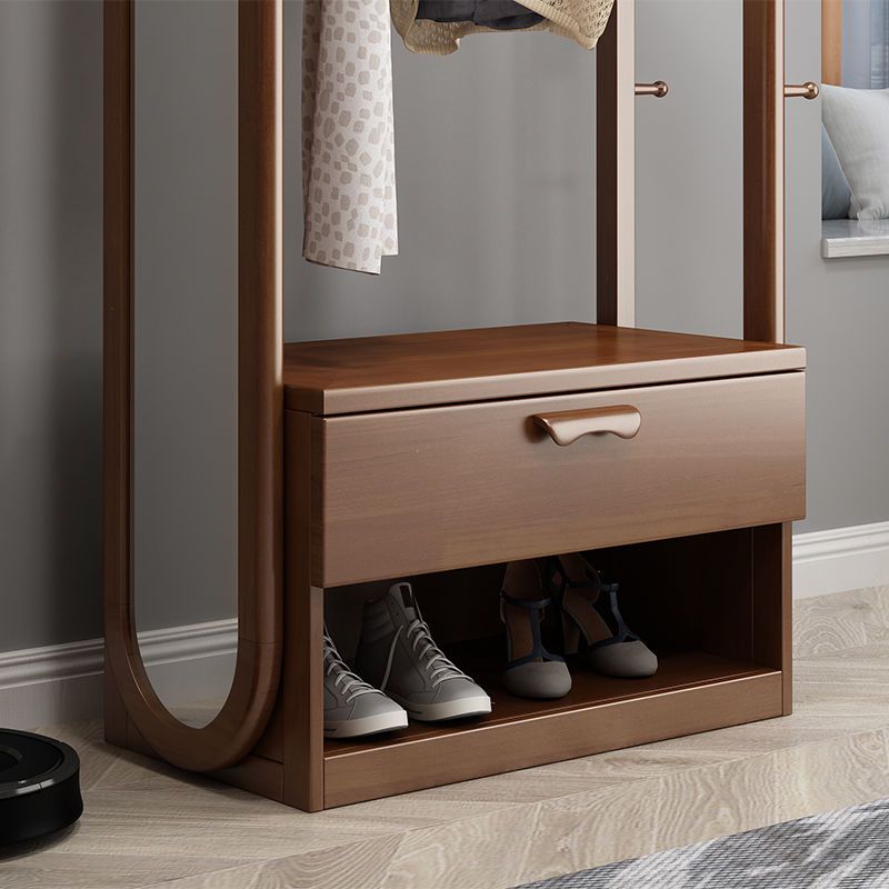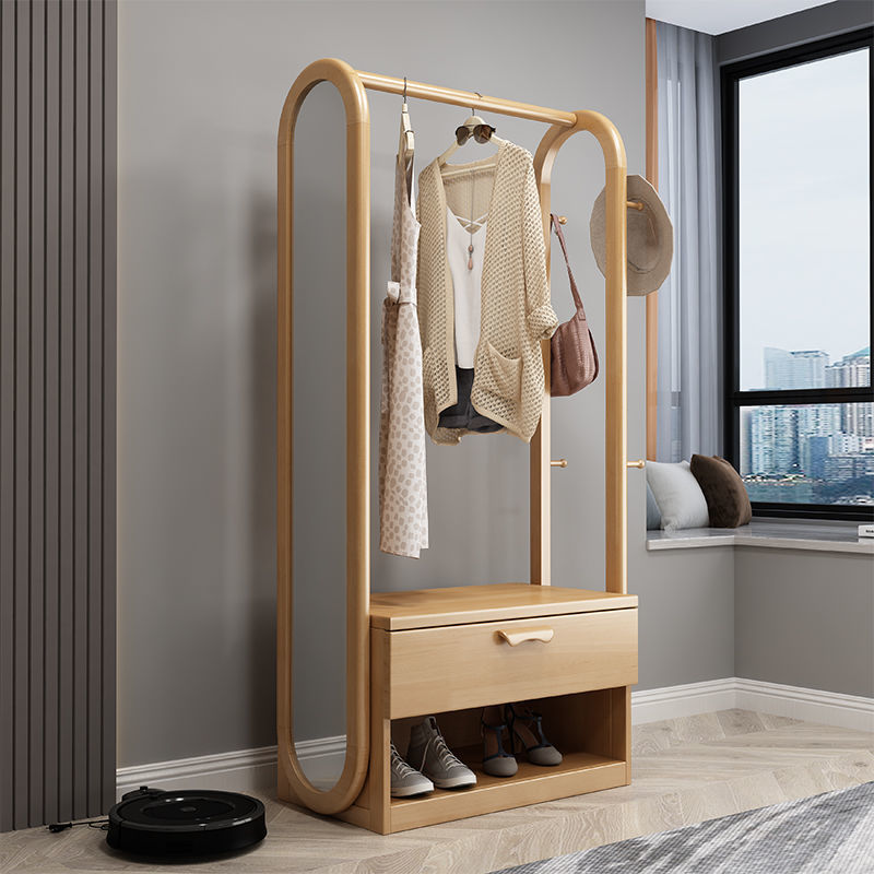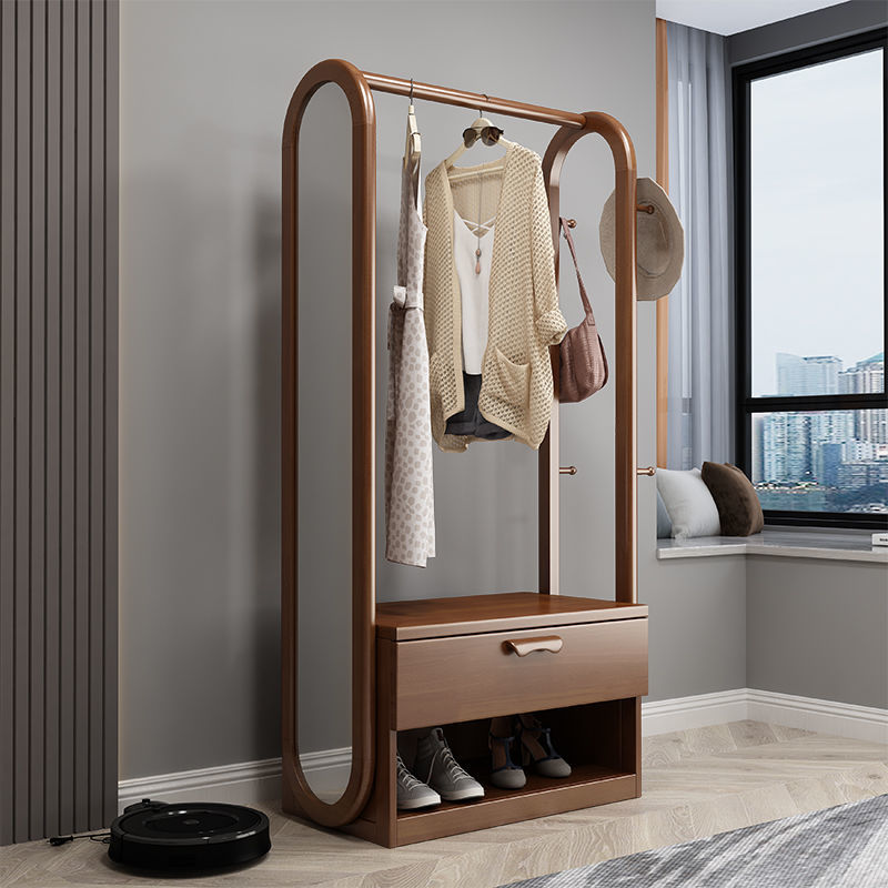 实木斗柜衣帽架落地卧室现代简约带镜子一体多功能创意置物挂衣架