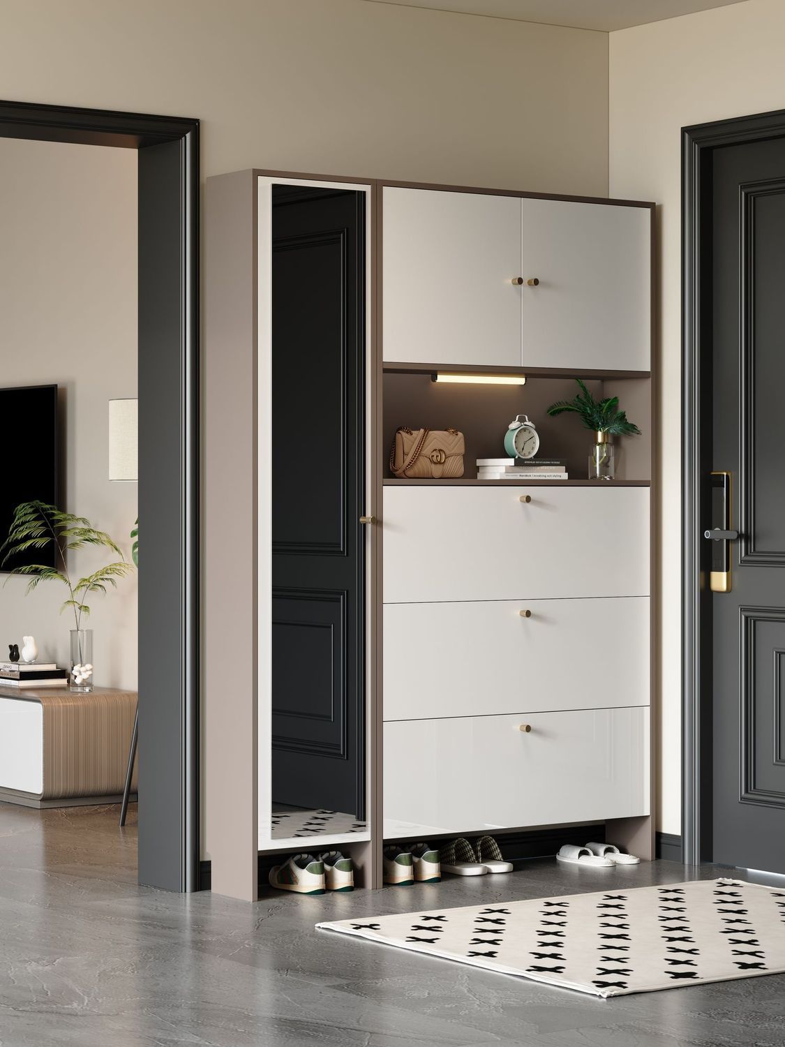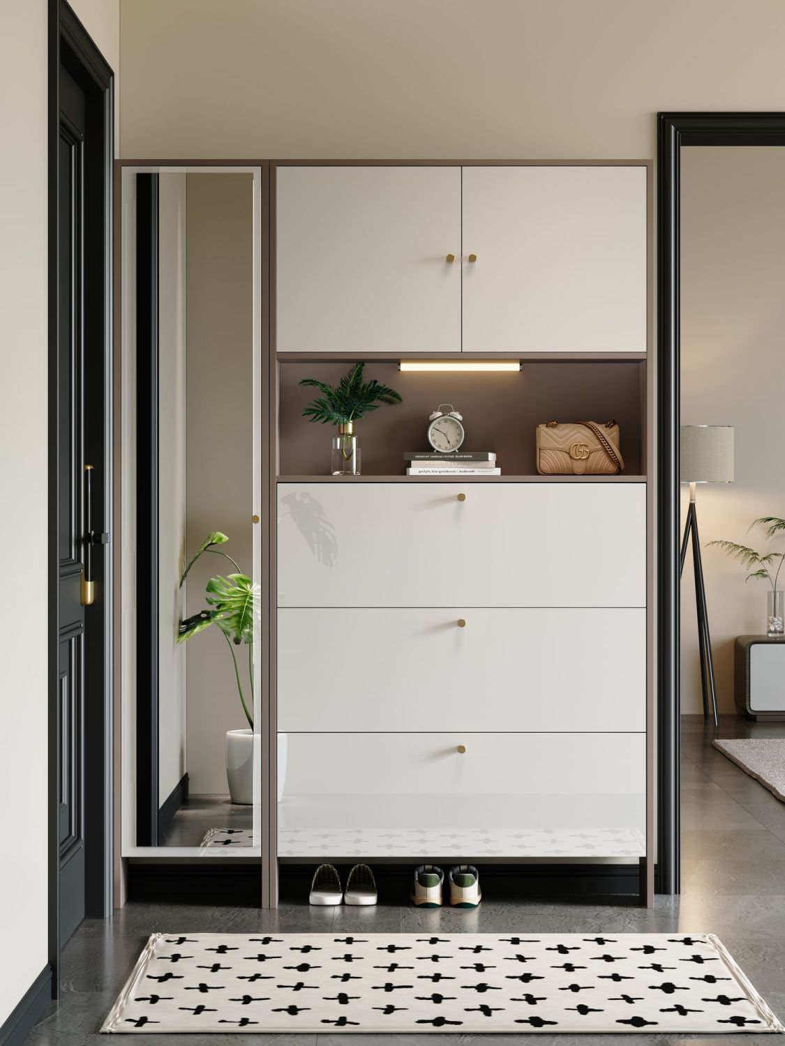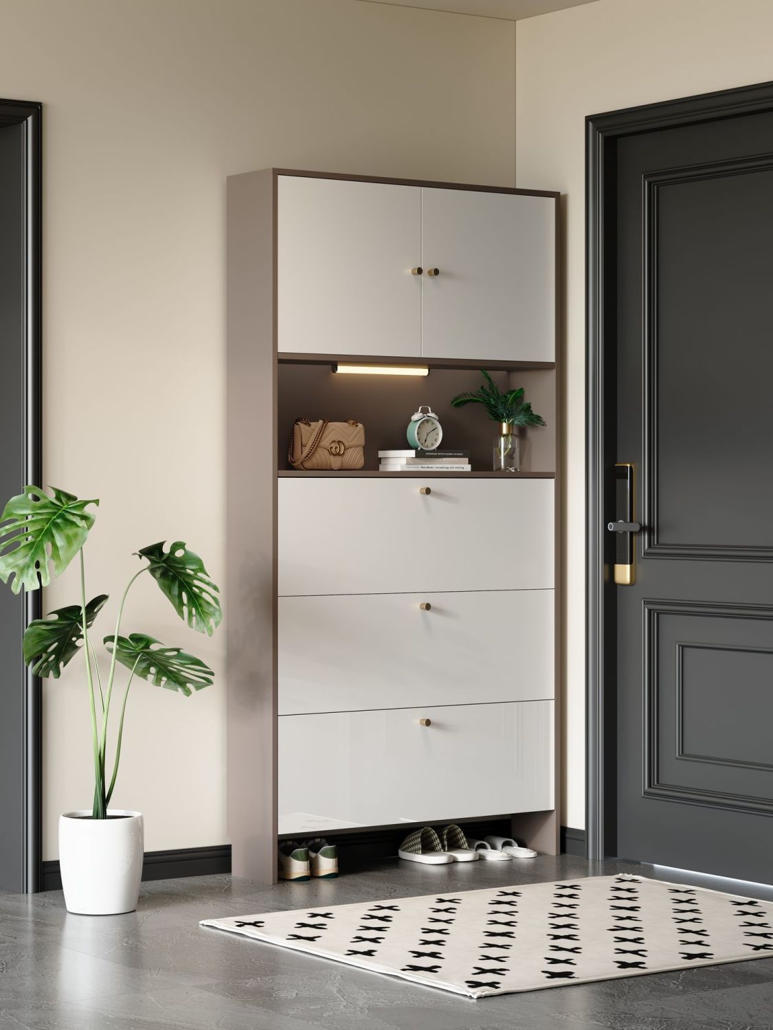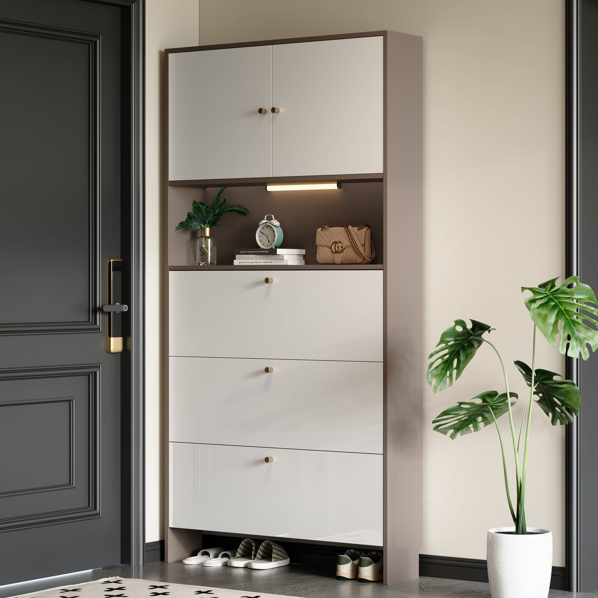 实木烤漆鞋柜家用门口入户玄关柜外楼道走廊大容量一体靠墙收纳柜