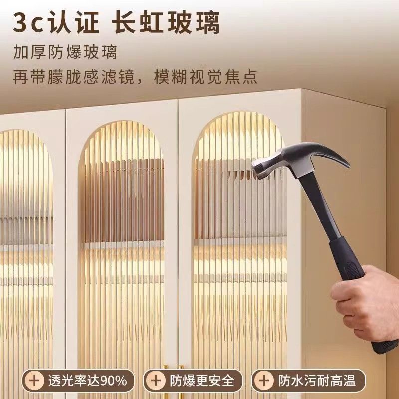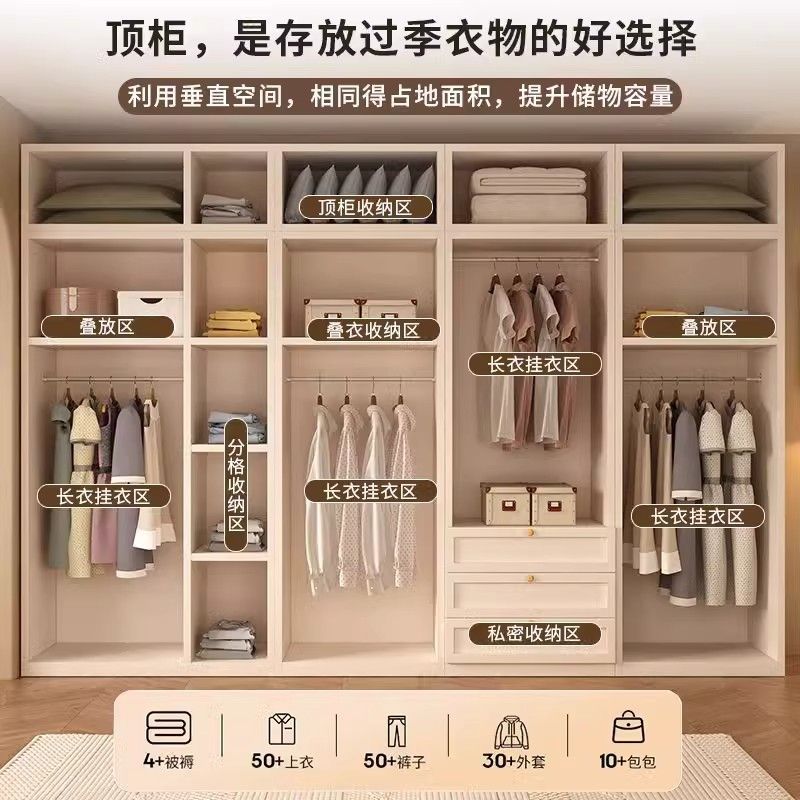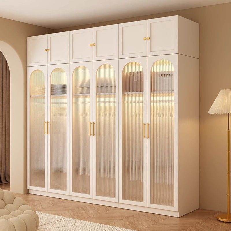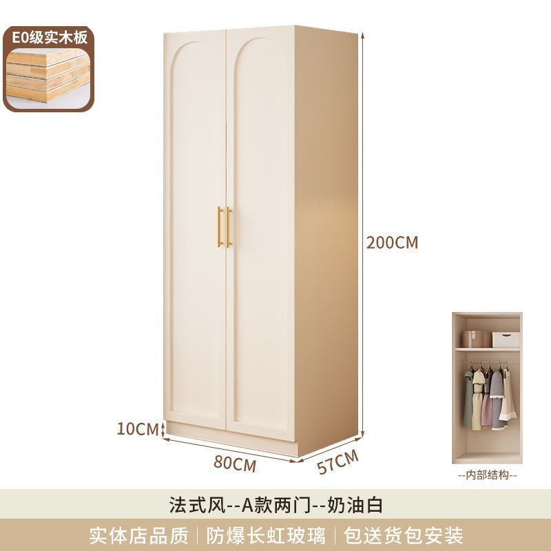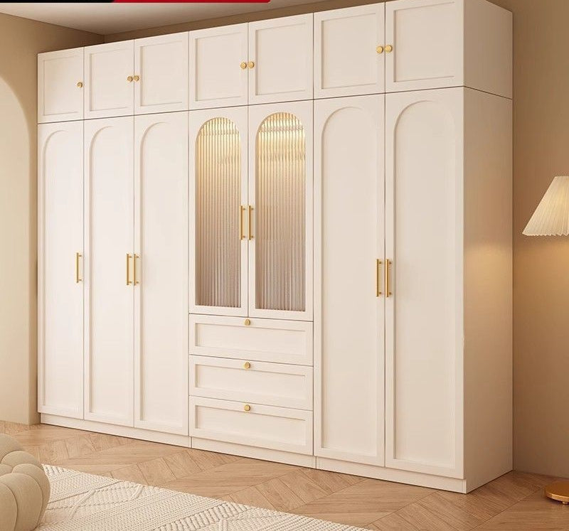 实木衣柜家用卧室新款组合定制带玻璃门法式柜子奶油风儿童大衣橱