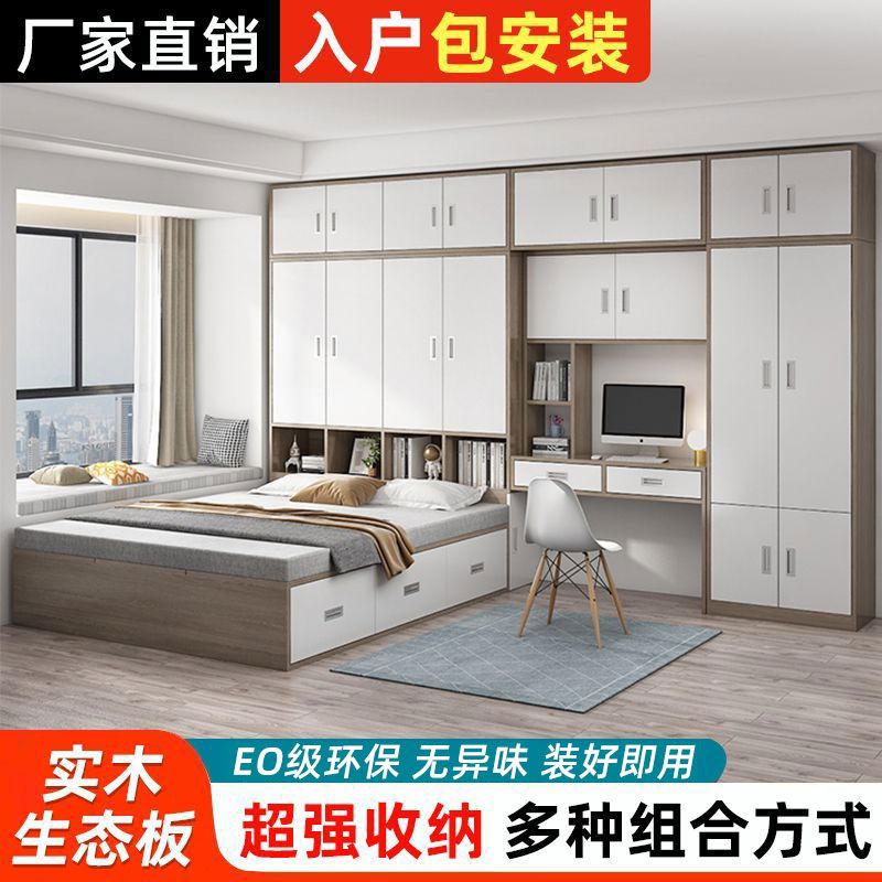 实木衣柜床榻榻米小户型儿童储物床组合床柜多功能卧室衣帽间定制