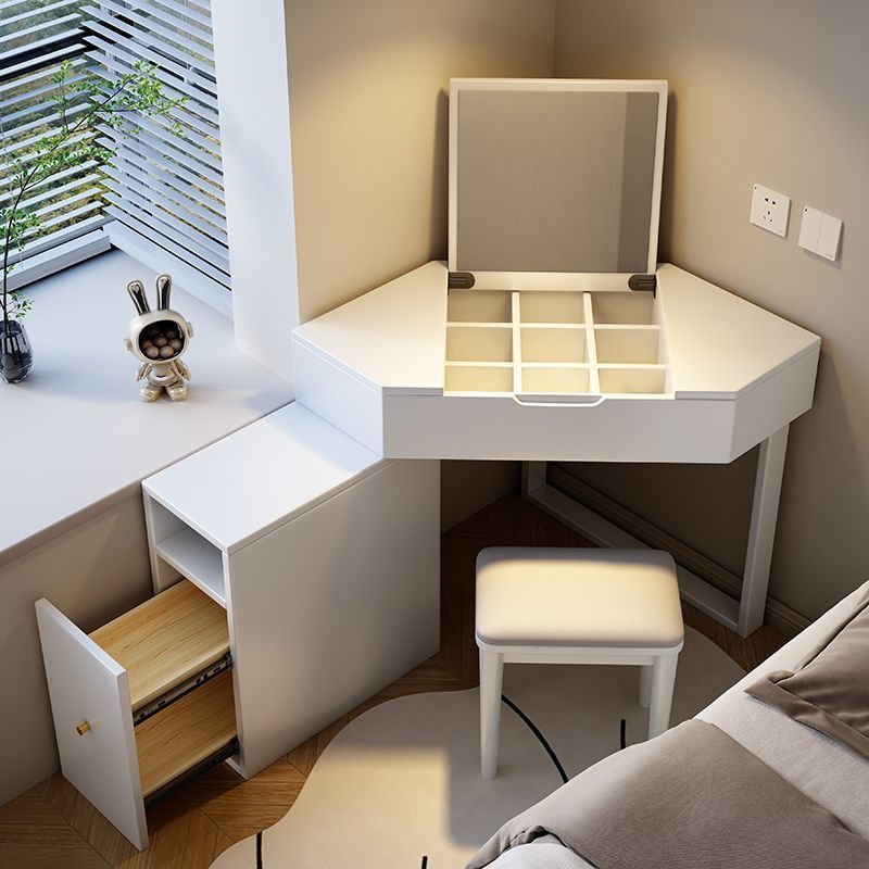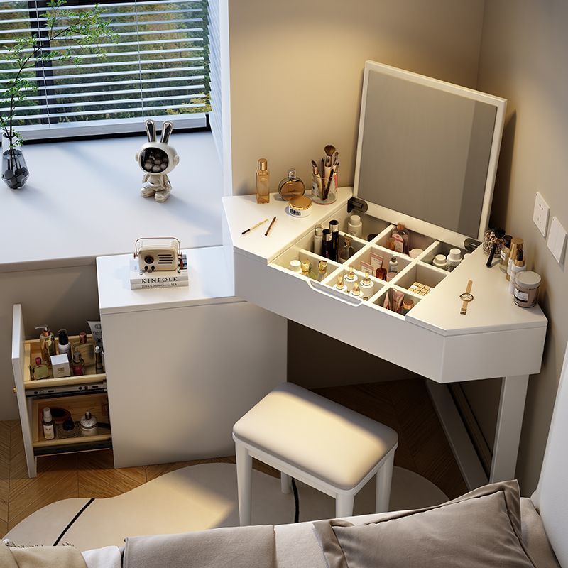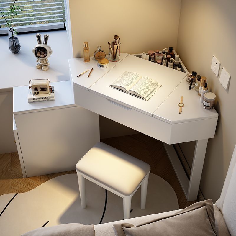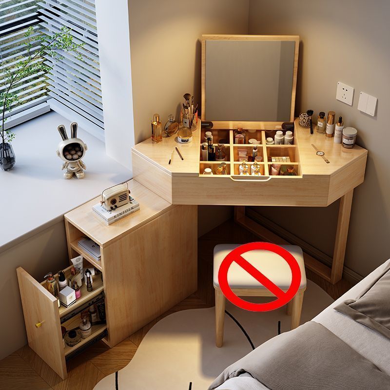 实木转角梳妆台卧室网红简约小户型ins收纳翻盖一体多功能化妆桌