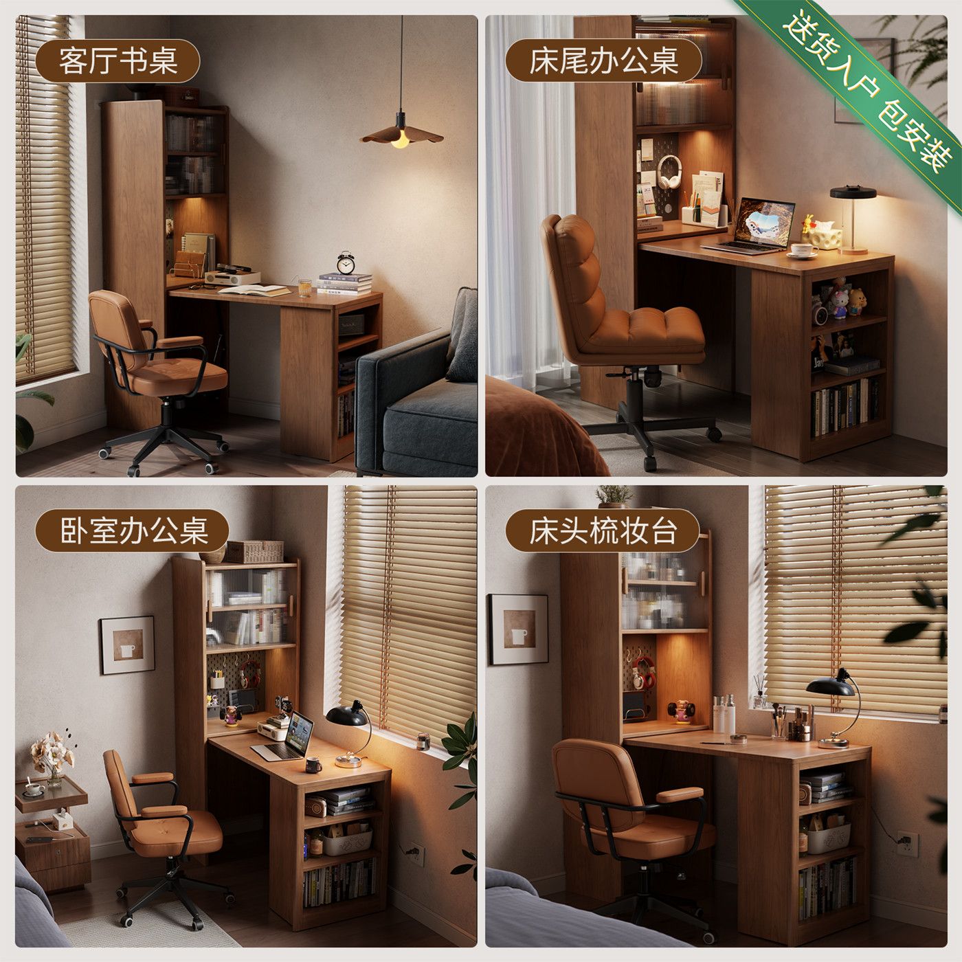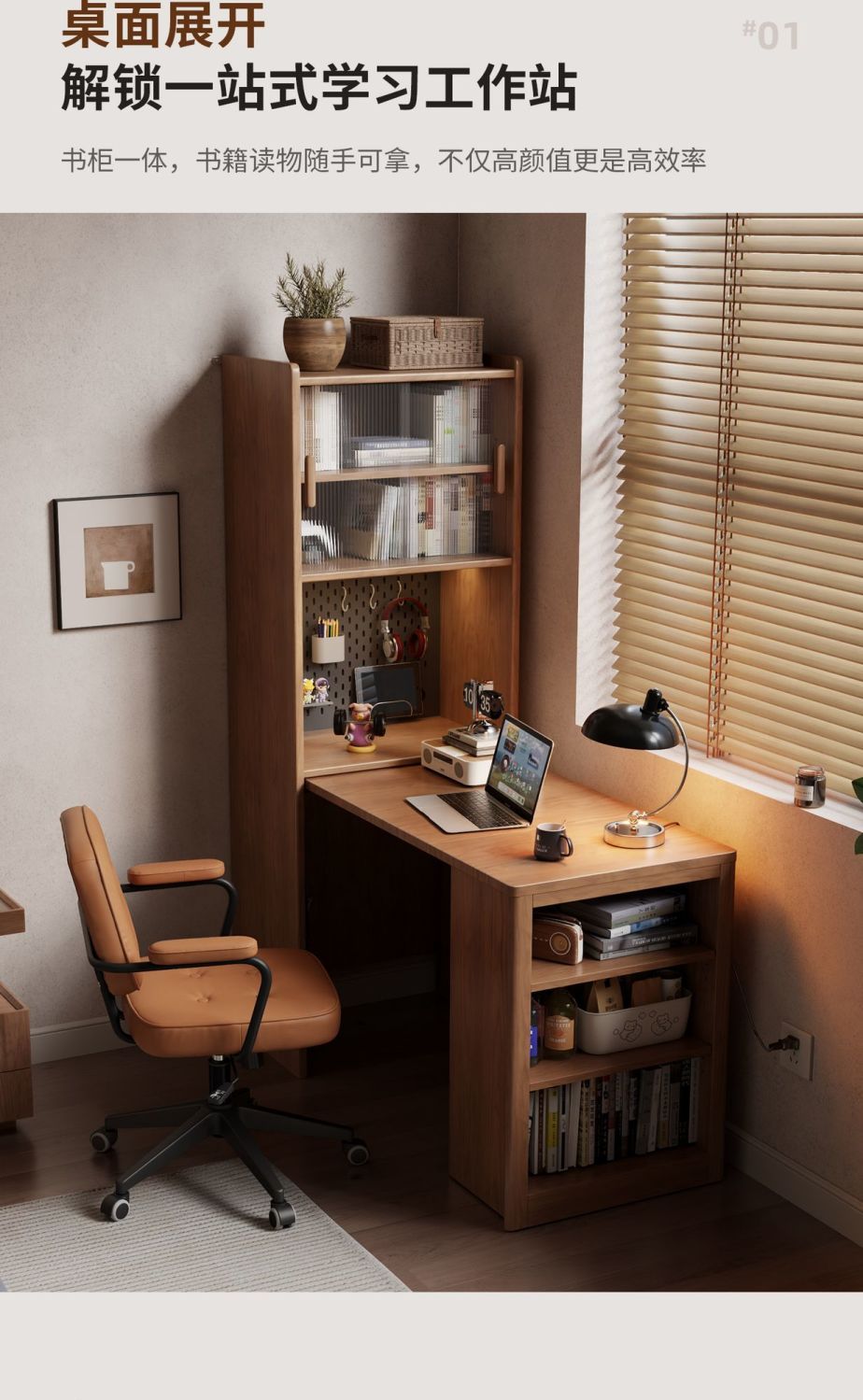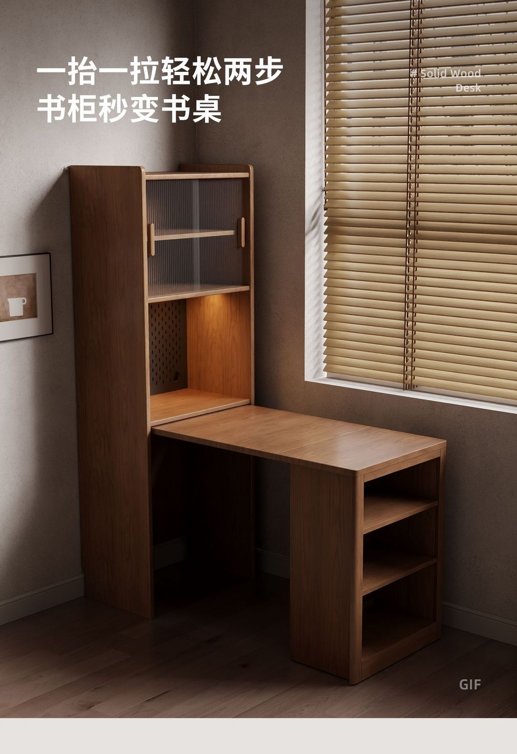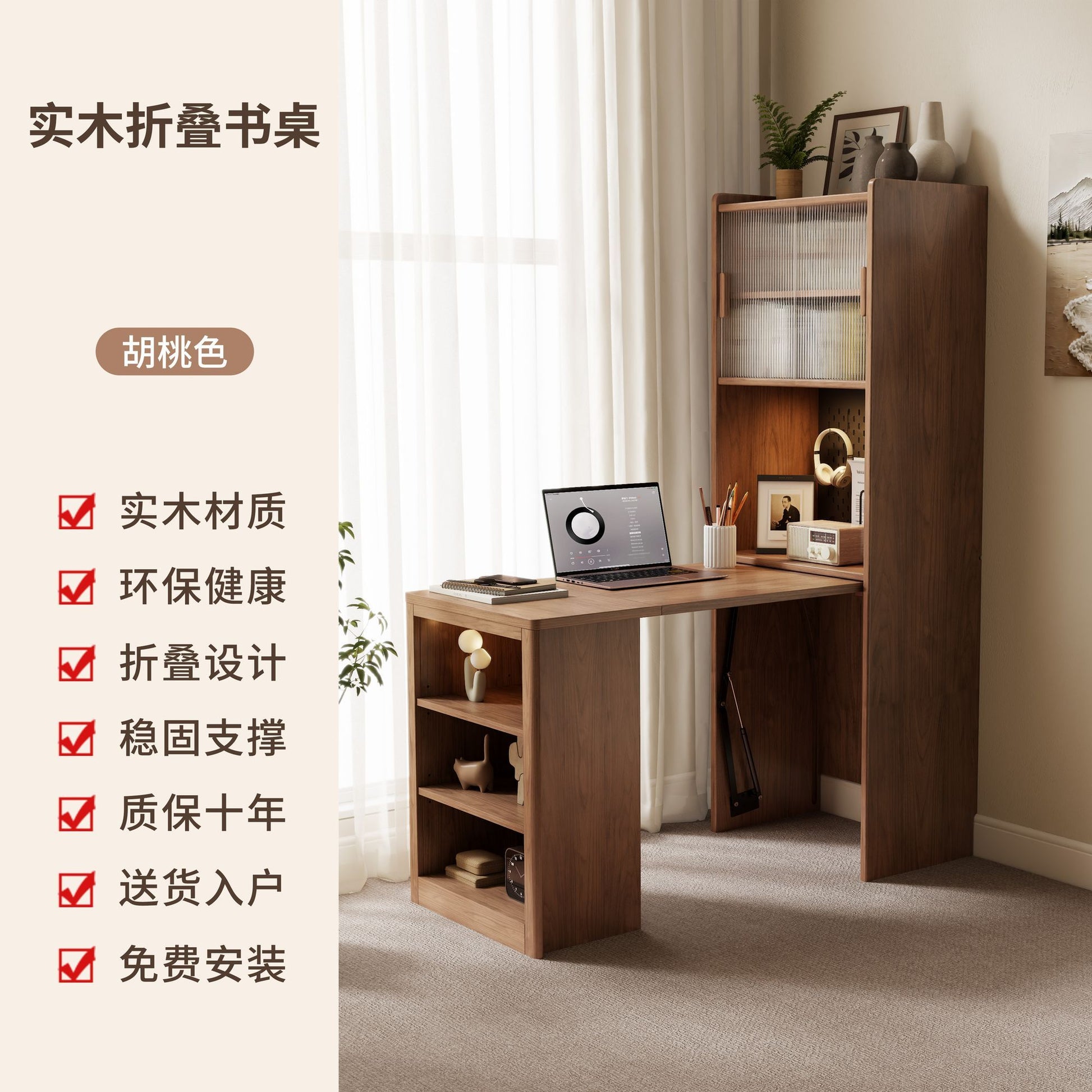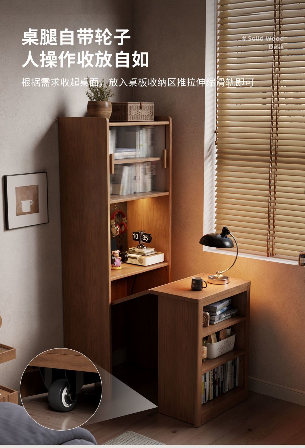 實木伸縮摺疊書桌書櫃一體組合學習桌小戶型書房臥室辦公桌電腦桌