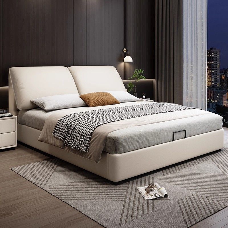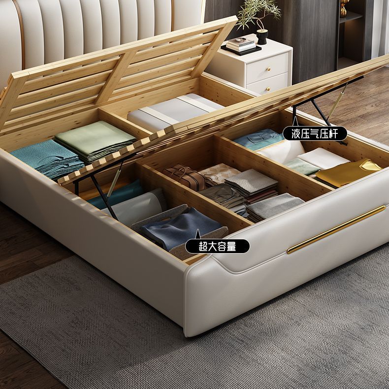 意式新款大象耳朵真皮床简约现代家用高端大气主卧储物双人床婚床