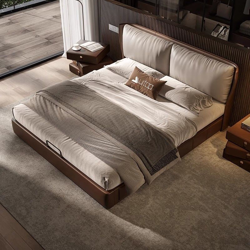 意式极简轻奢真皮软包床纳帕真皮高箱储物落地主卧室高端双人床