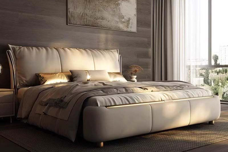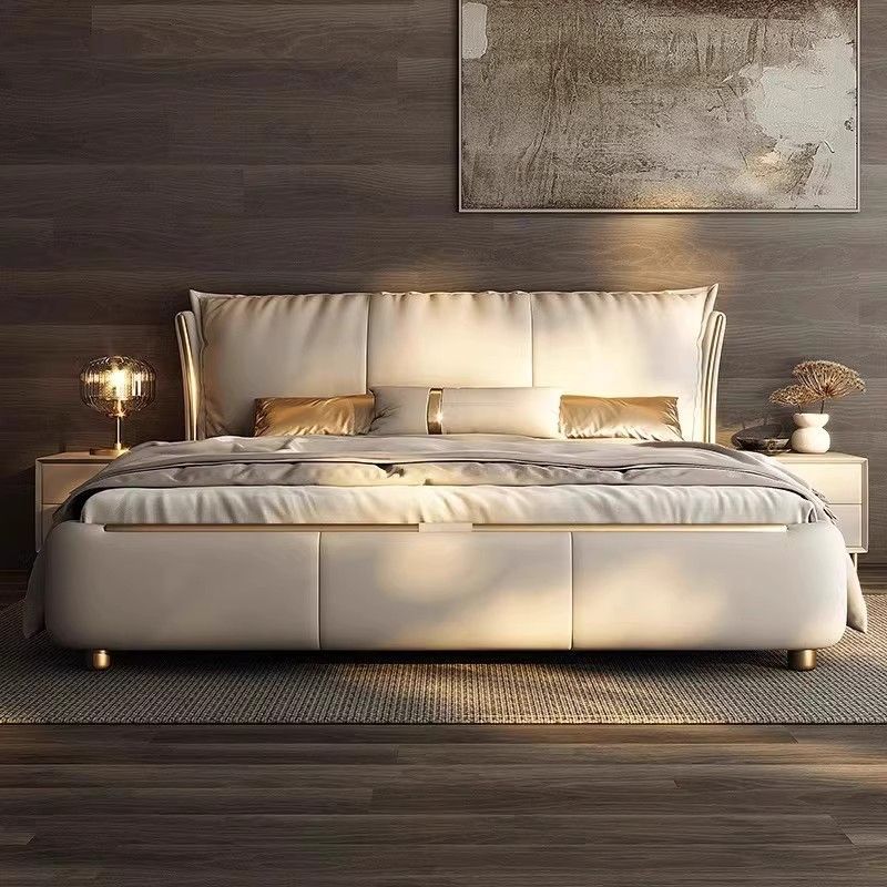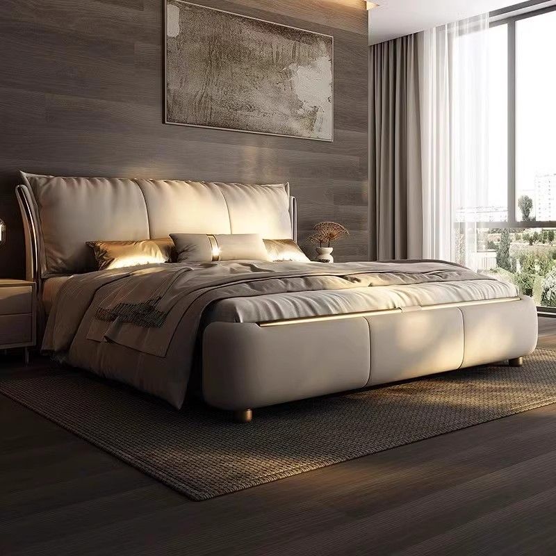意式轻奢真皮床主卧大床现代简约主卧室北欧皮艺软床储物双人床