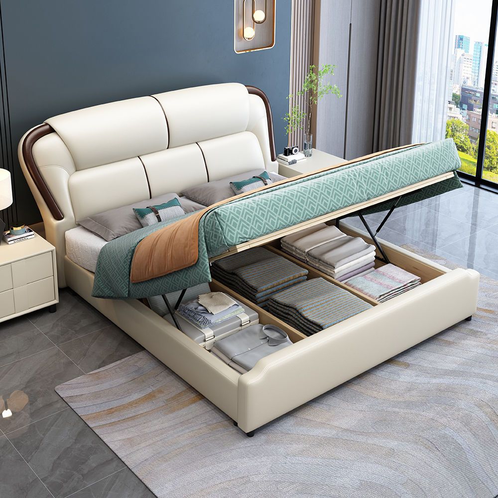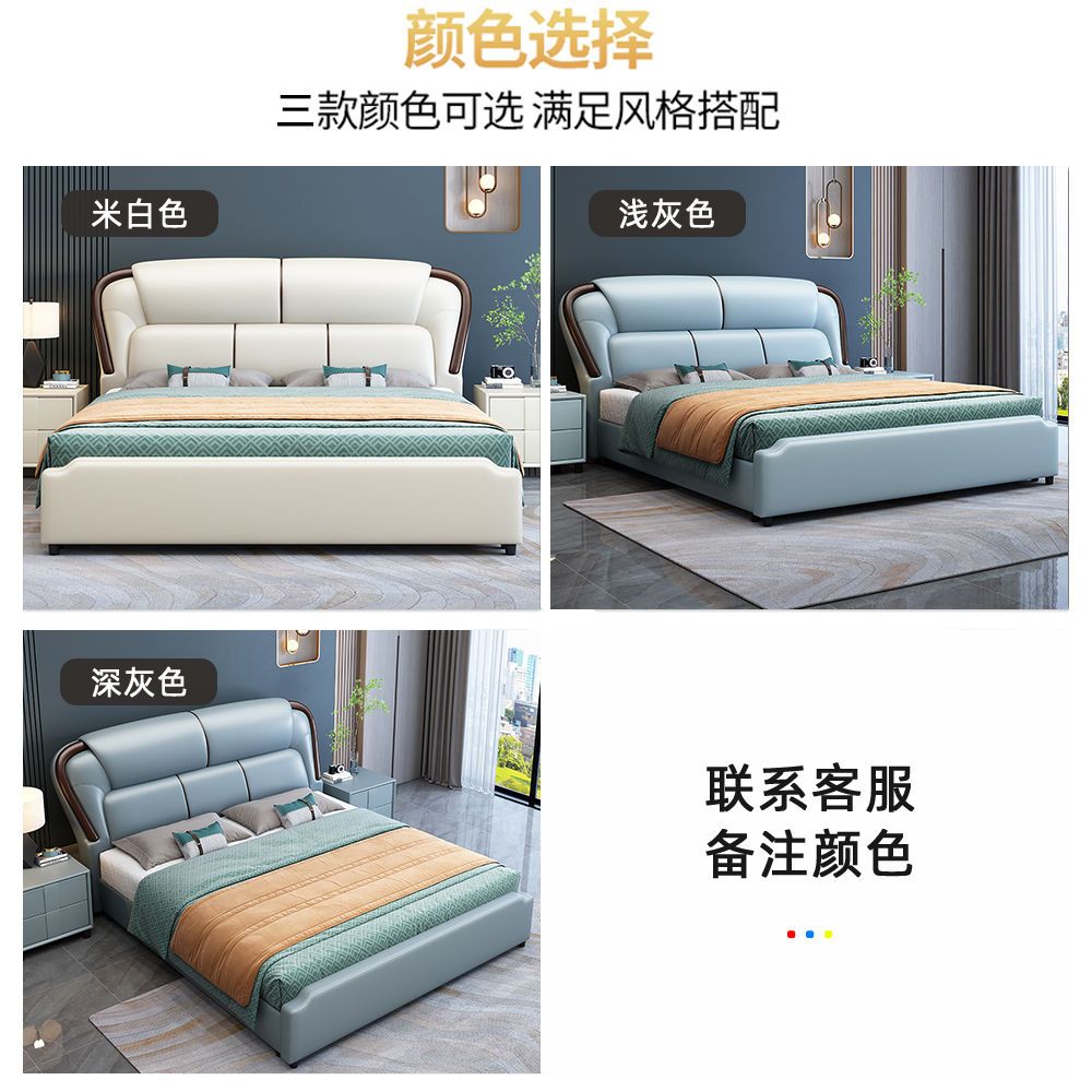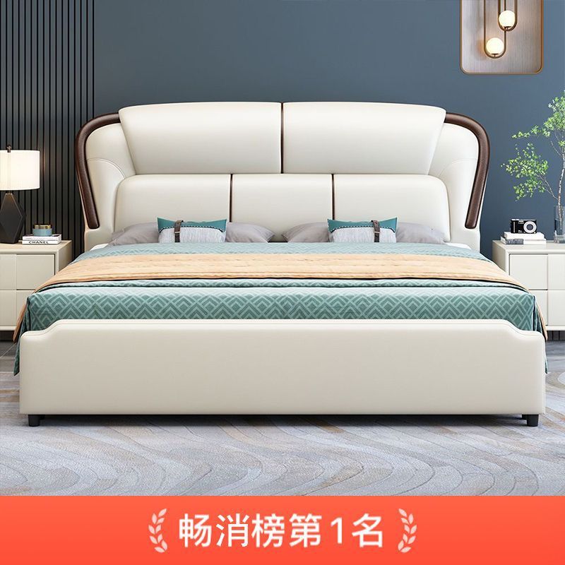 意式轻奢真皮床1.8双人大床现代简约主卧婚床1.5米实木气压储物床
