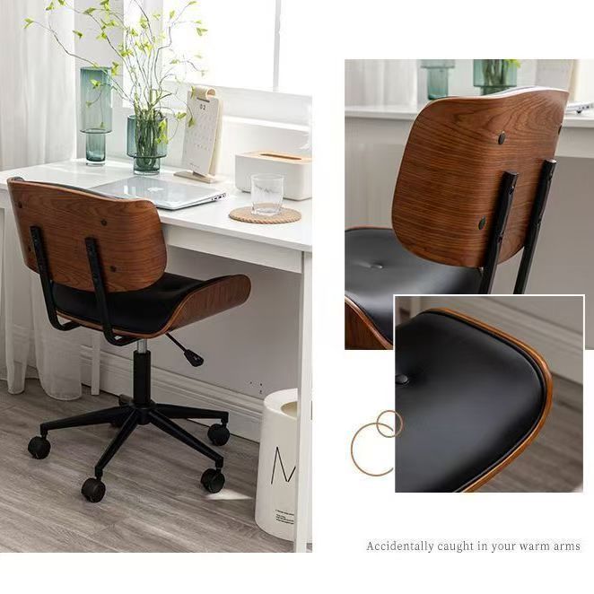 意式轻奢简约旋转电脑椅家用办公书房可升降舒适实木伊姆斯椅子