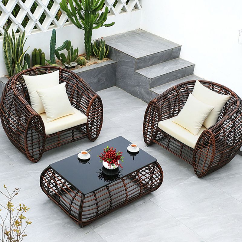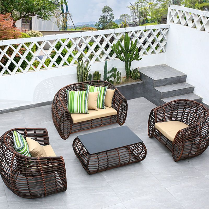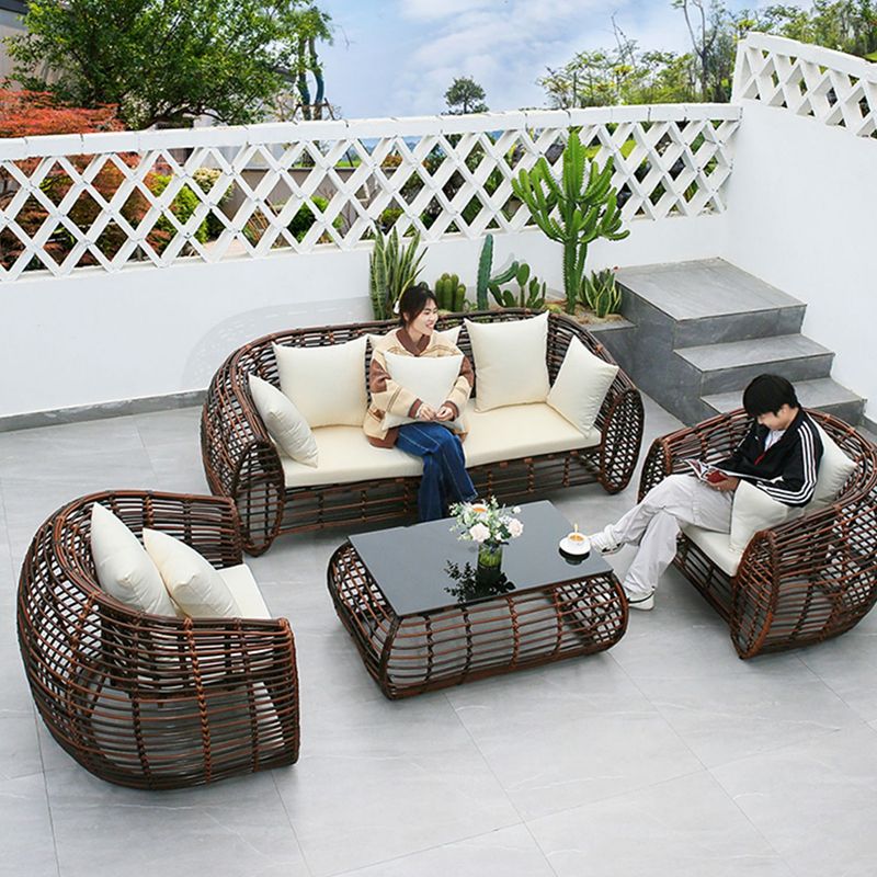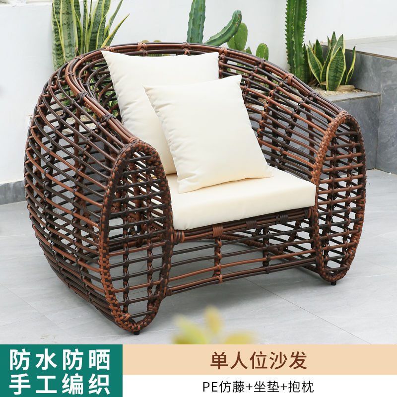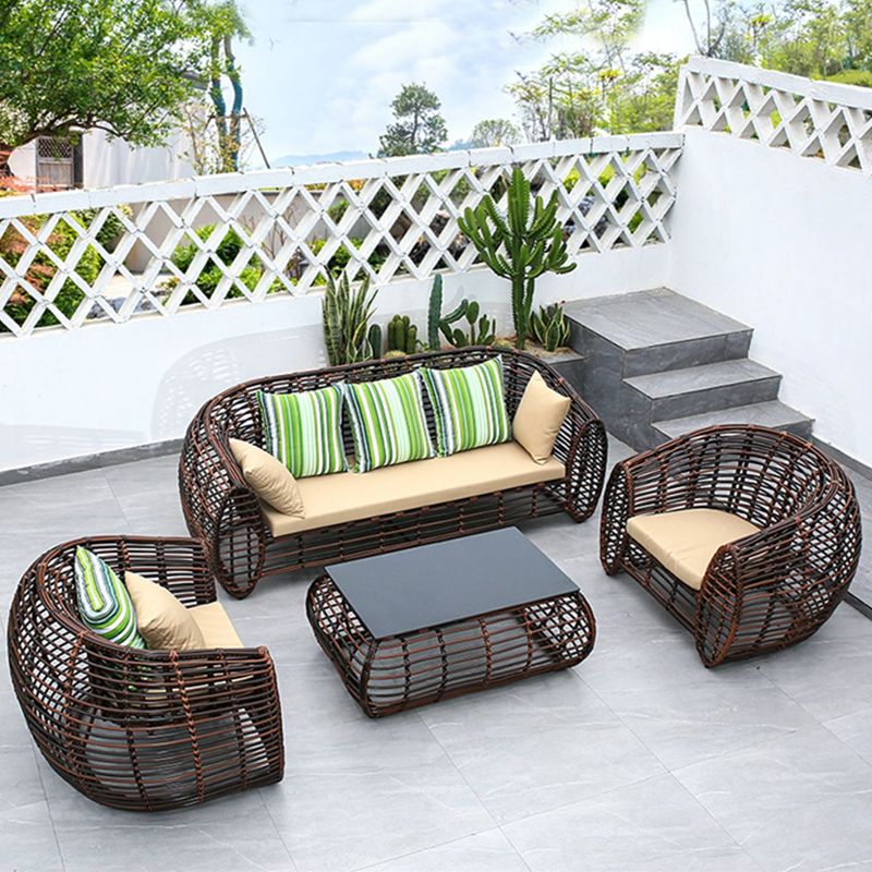 户外庭院别墅阳台简约现代粗藤沙发组合室外酒店会所防水防晒家具