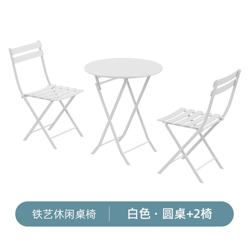 户外桌椅可折叠组合室内圆桌组合三件套露台户外折叠休闲铁艺桌子