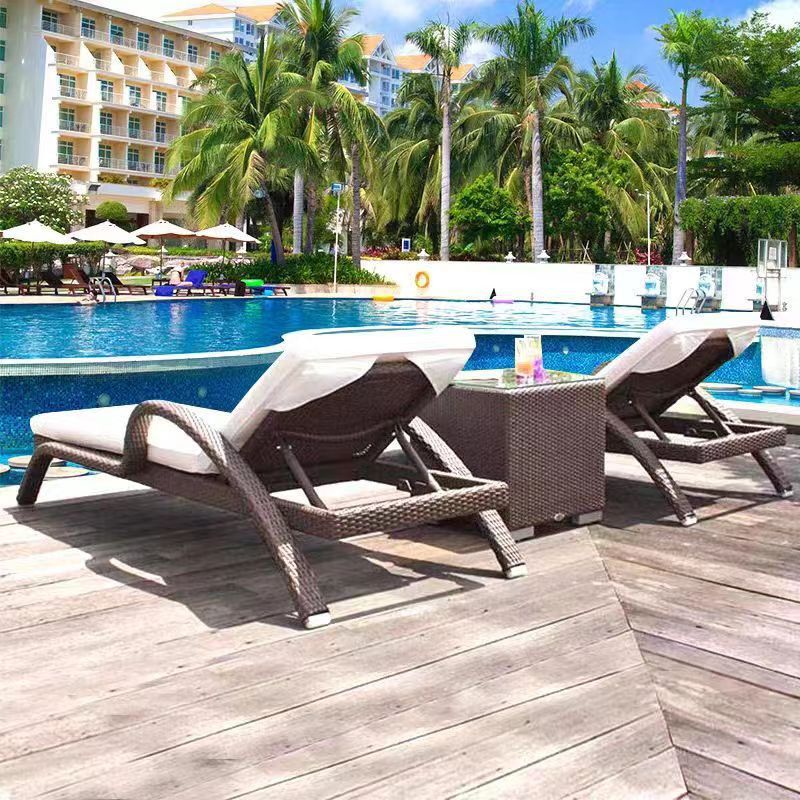 户外躺床阳台休闲藤椅室外庭院躺椅别墅游泳池躺床折叠藤编沙滩椅