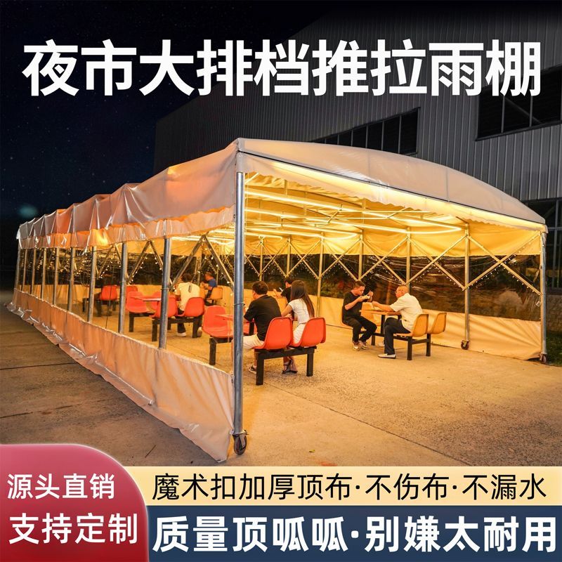 户外餐饮伸缩推拉雨棚帐篷大型移动推拉蓬摊排档汽车棚遮阳遮雨棚