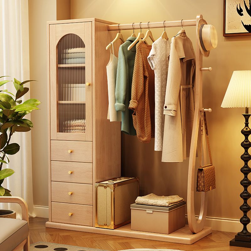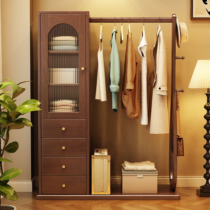 新中式实木衣帽架斗柜一体置物架大容量挂衣架卧室床尾收纳储物柜