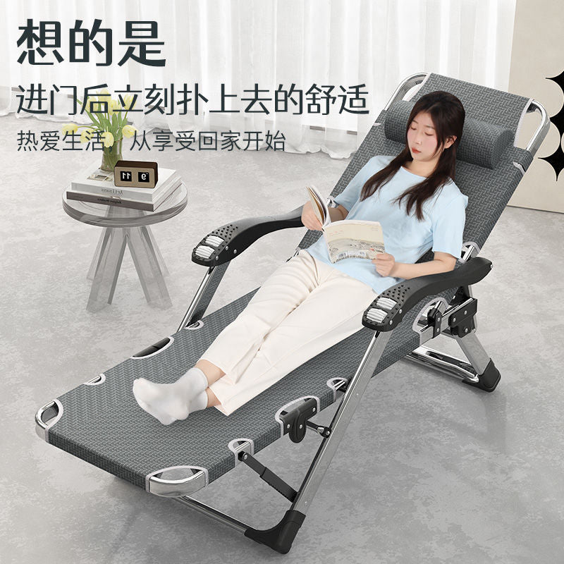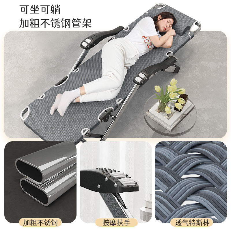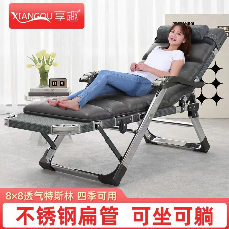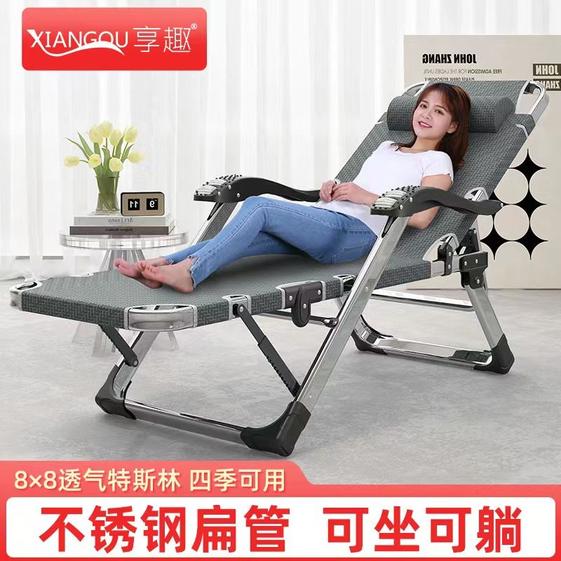 新款不锈钢折叠躺椅午休办公室午睡床结实耐用可坐可躺沙发懒人椅
