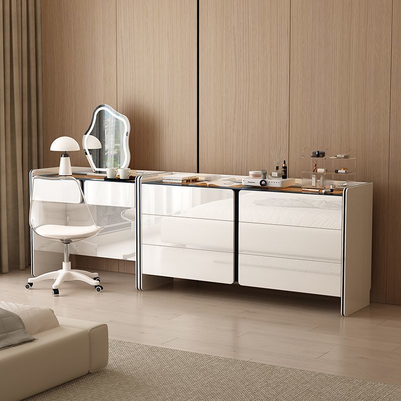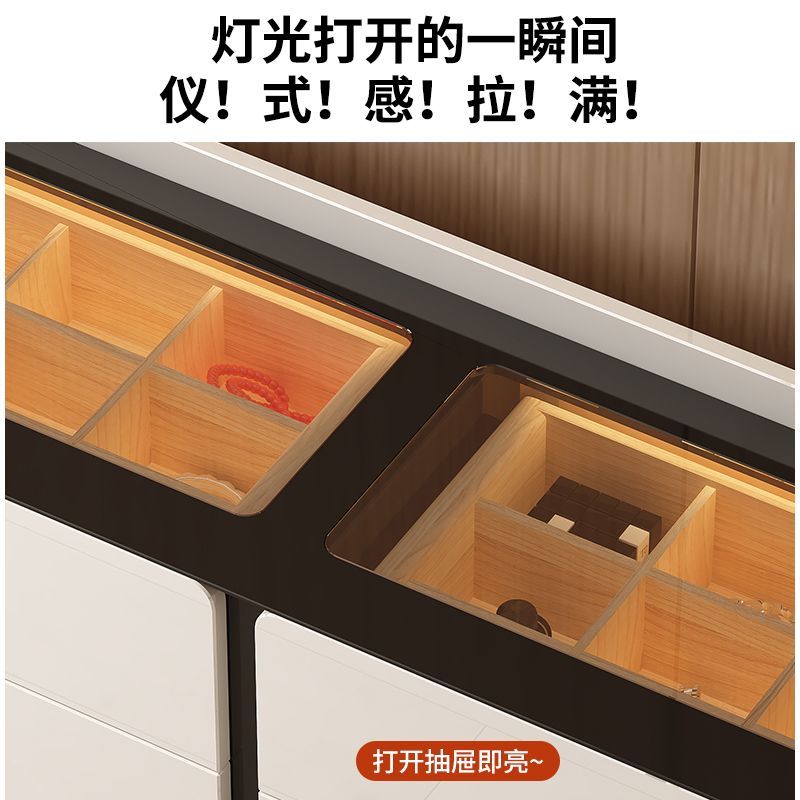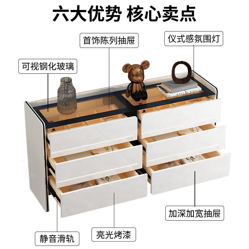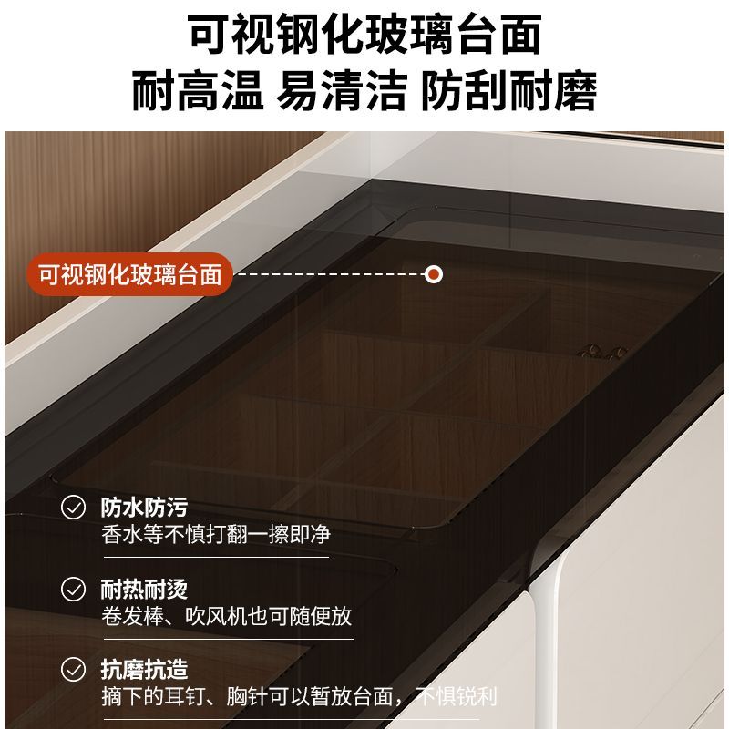 新款亮白高级感梳妆台斗柜一体ins风卧室化妆桌床尾收纳储物柜
