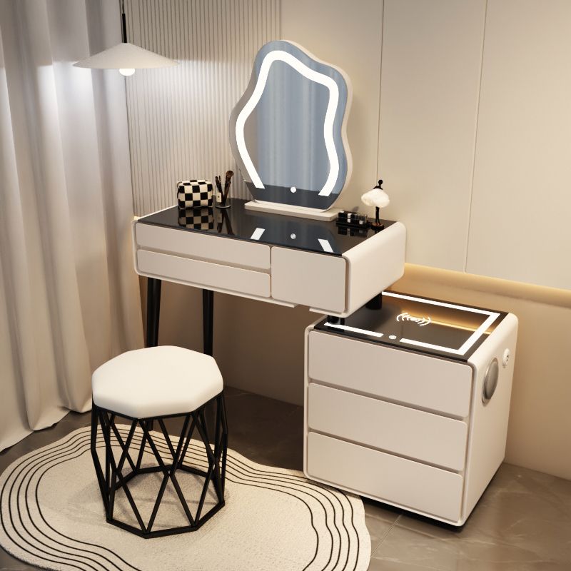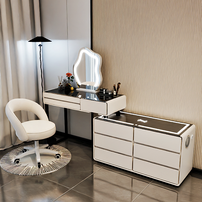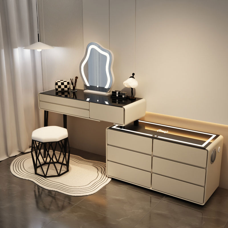 新款实木岩板梳妆台卧室现代简约奶油风高级化妆台斗柜一体化妆桌