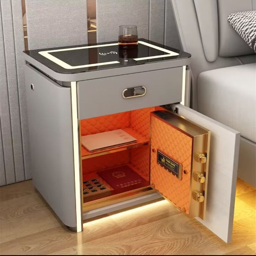 新款智能床头柜保险柜一体家用四斗柜多功能无线充音响指纹保险箱