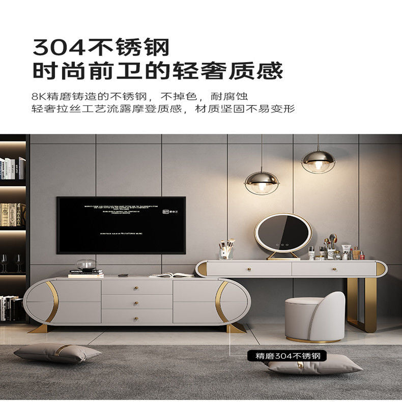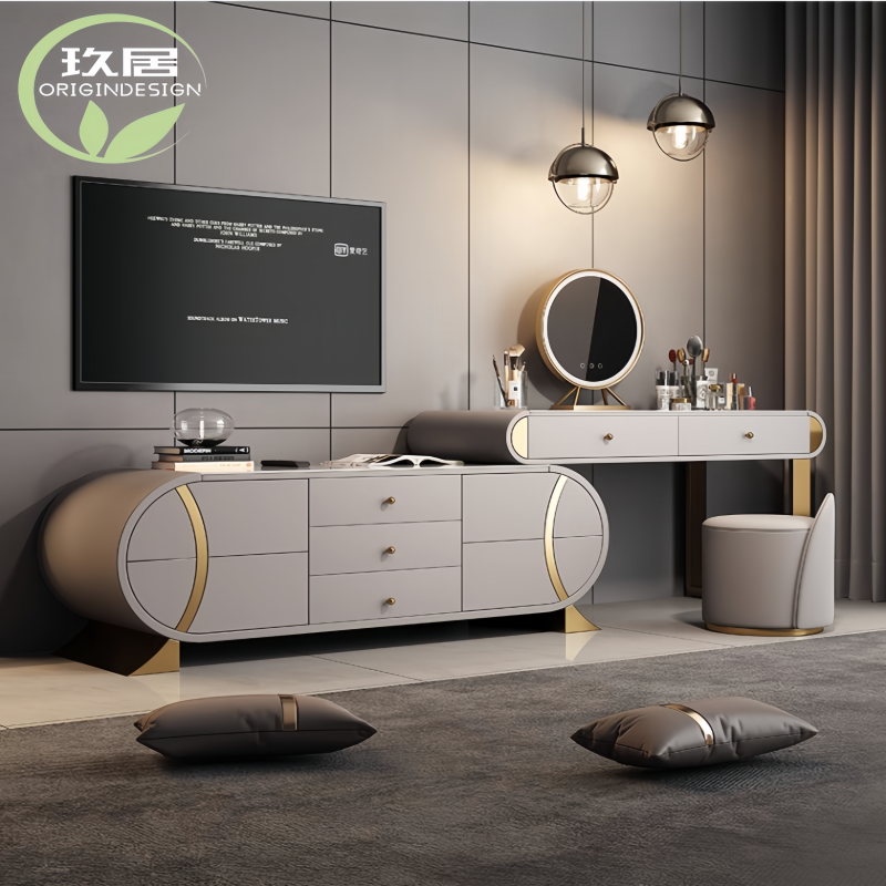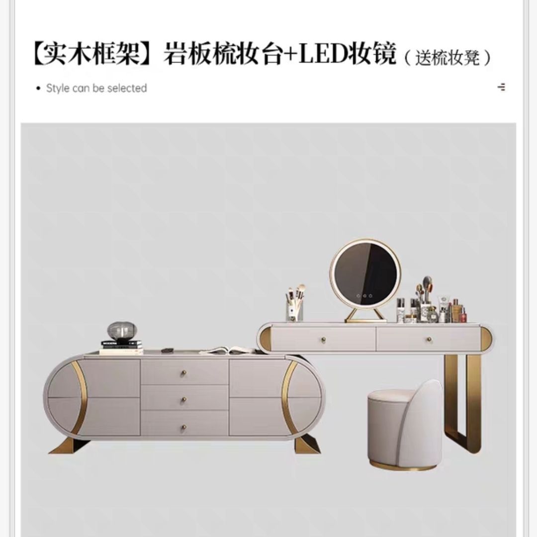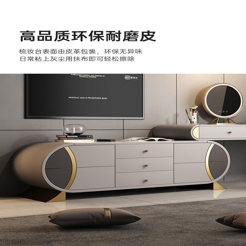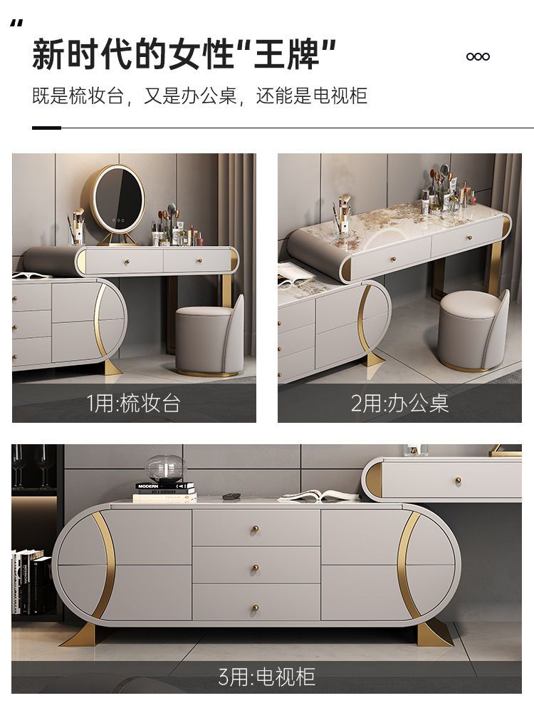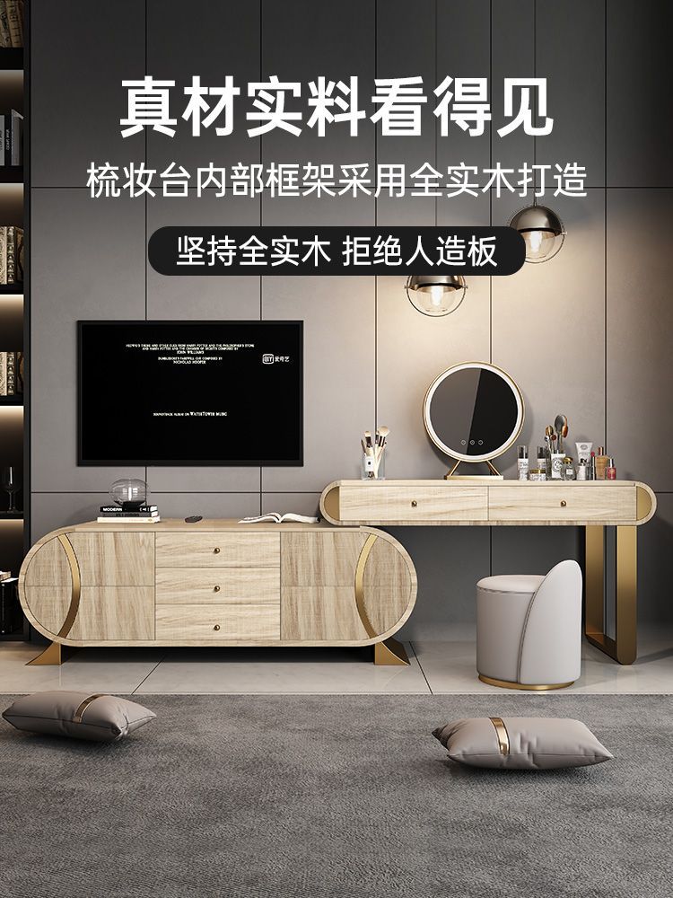 新款高级感轻奢转角女生化妆台卧室一体岩板电视柜实木梳妆台桌