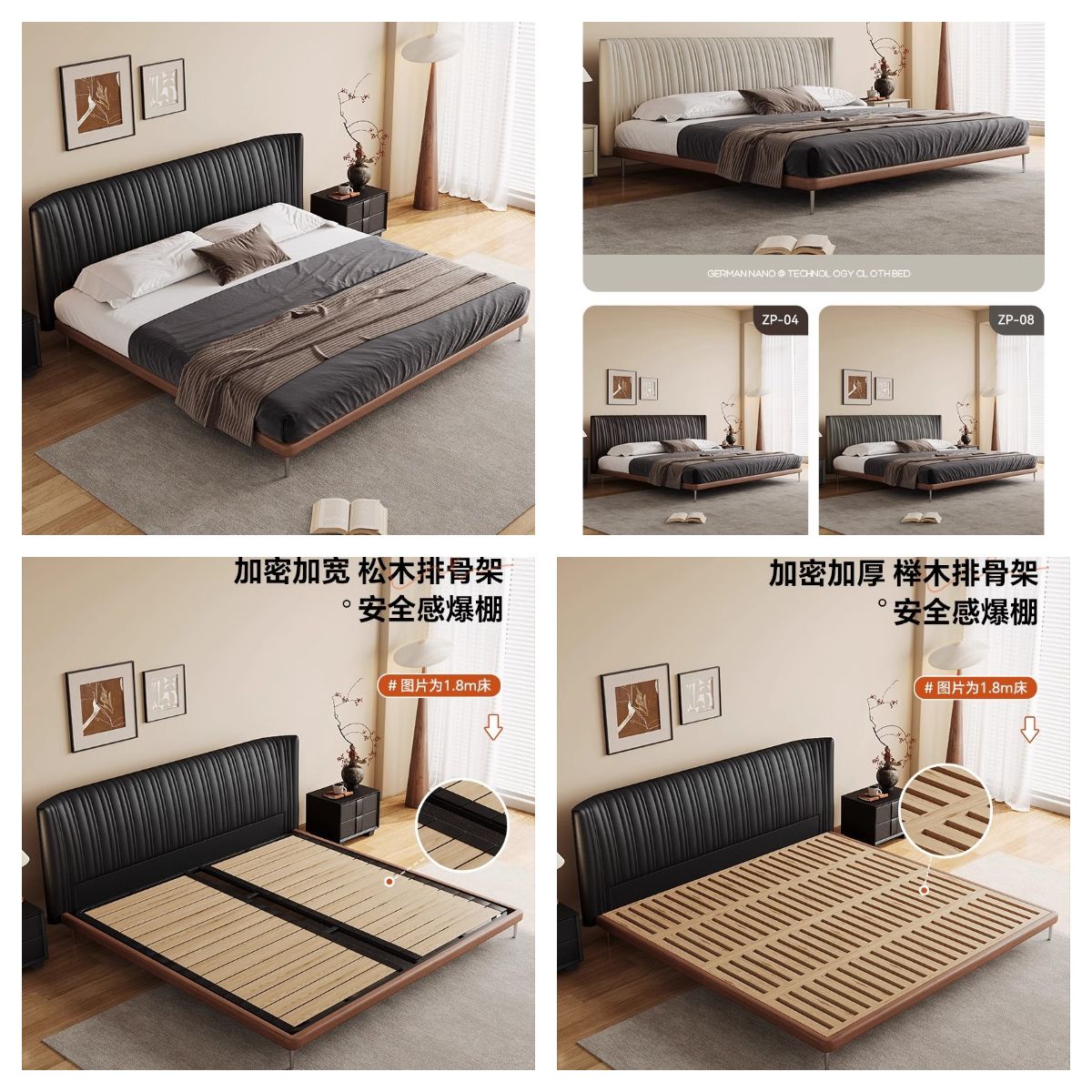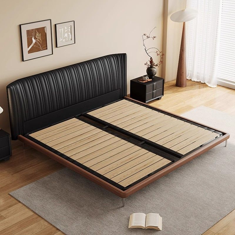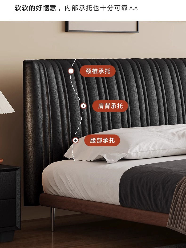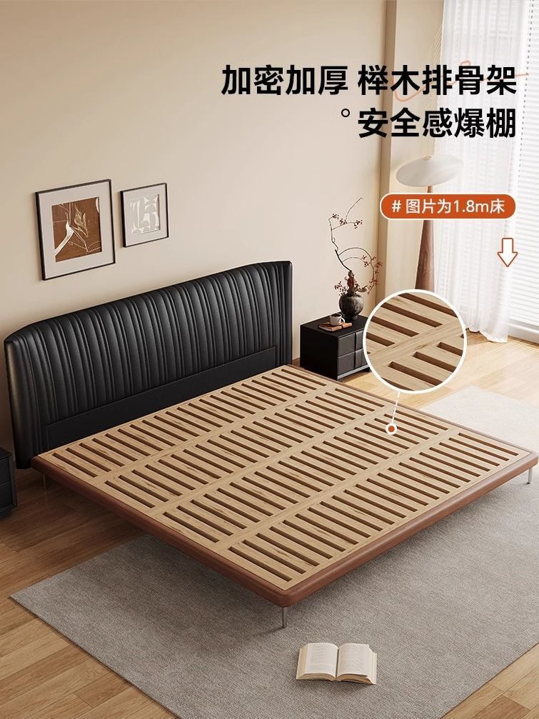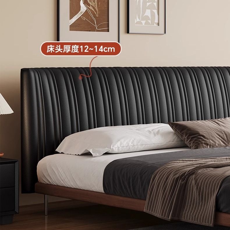 方辰新款贝壳古风真皮双人床黑色意式极简复古极简轻奢实木床婚床